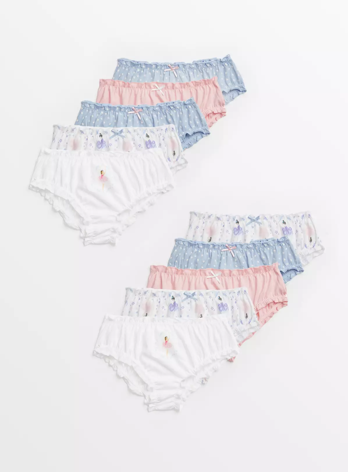 Perfect for adding a cute ballet vibe to your little one’s essentials drawer, this 10 pack of briefs lets you stock up in style. Made from pure cotton, they get a variety of pastel shades and fun prints to choose from!