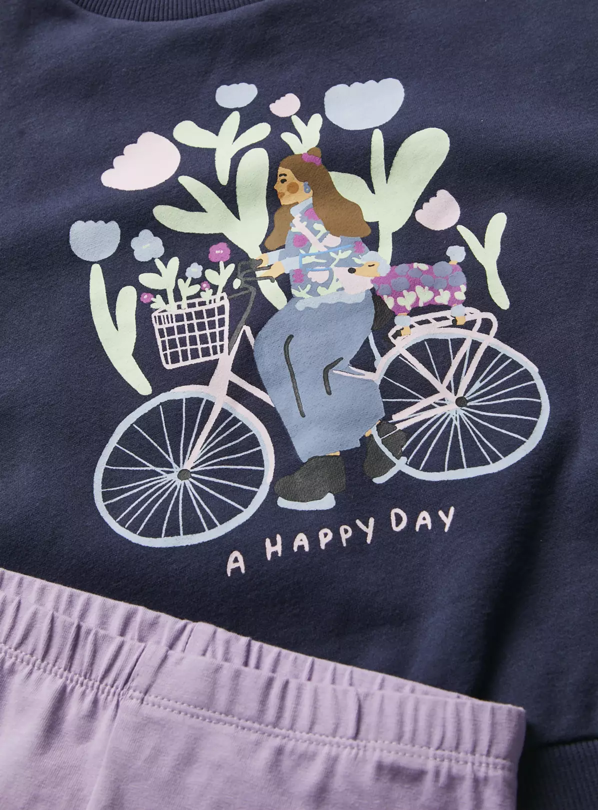 A cute and cosy addition to their wardrobe this season! Our sweatshirt and leggings set includes 1 navy sweatshirt which has a lovely bike design on the front, as well as 1 pair of plain pink leggings.