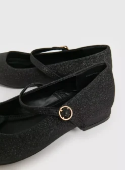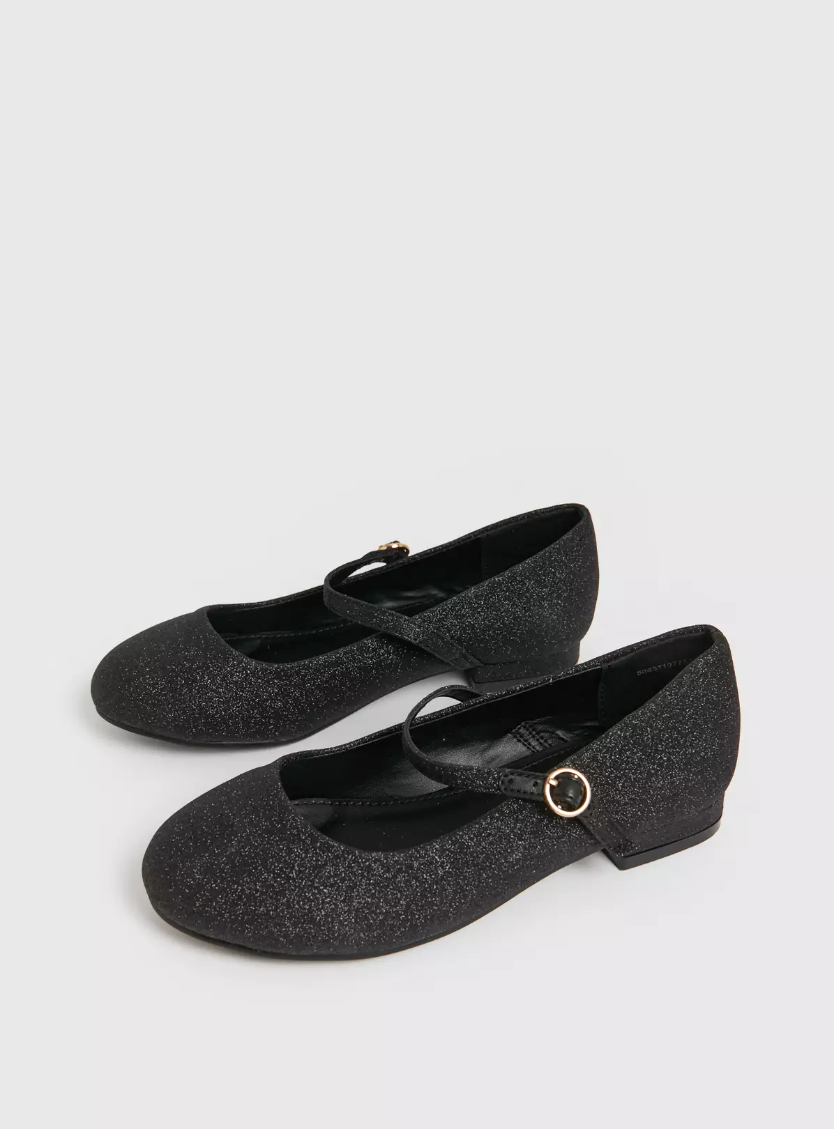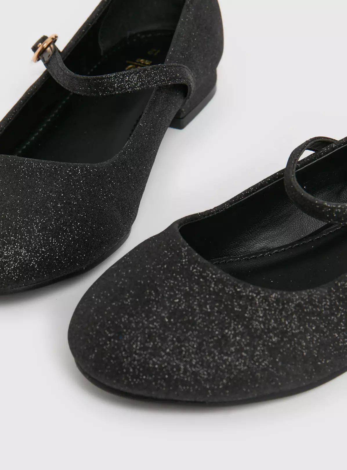 A super cute pair of black glittery shoes for your little one, with a one strap with buckle fastening and a dinky heel, they are perfect for parties and special occasions.