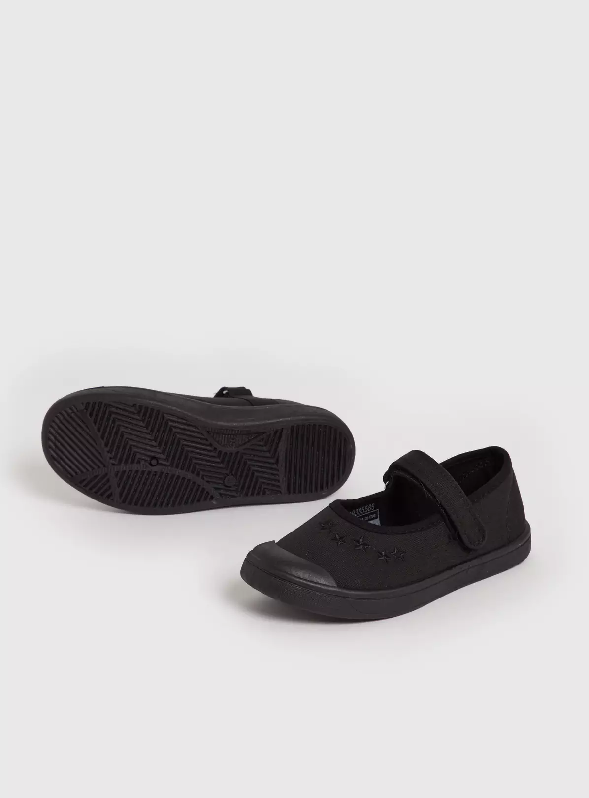 These classic black Mary Jane-style plimsolls will make an ideal addition to gym bags and look great with shorts and t-shirts. They feature an embroidered star pattern, one touch strap and rubber sole perfect for any summer playtime. With Micro-Fresh technology used to prevent odour causing bacteria, keeping shoes fresher for longer.