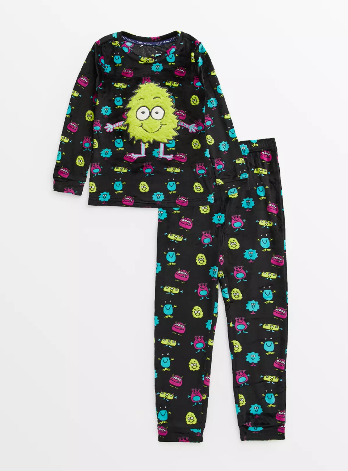 An awesome addition to their collection! Our black slinky pyjamas feature a super fun all-over monster print. This set includes 1 long sleeve top which features a big monster design on the front, as well as 1 pair of pyjama bottoms which have a comfy elasticated waist for a snuggly fit!