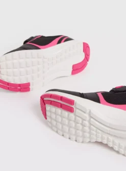 Cool and casual for your little one. In black with fun pink accents, a contrasting white sole and a soft knitted upper. They feature a stretch lace design for added style and have a handy one touch fastening for easy dressing! Made with Micro-Fresh® technology used to prevent odour causing bacteria, keeping shoes fresher for longer.
