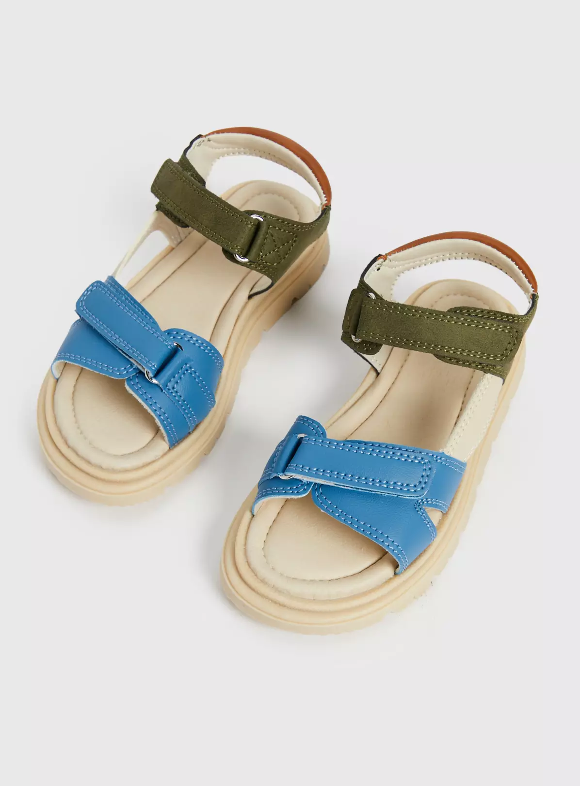 Retro, chunky and cool for the summer. Our cute block colour sandals are the perfect option for adding style to a simple, summertime outfit. With a textile upper and cleated soles for extra fashion points.