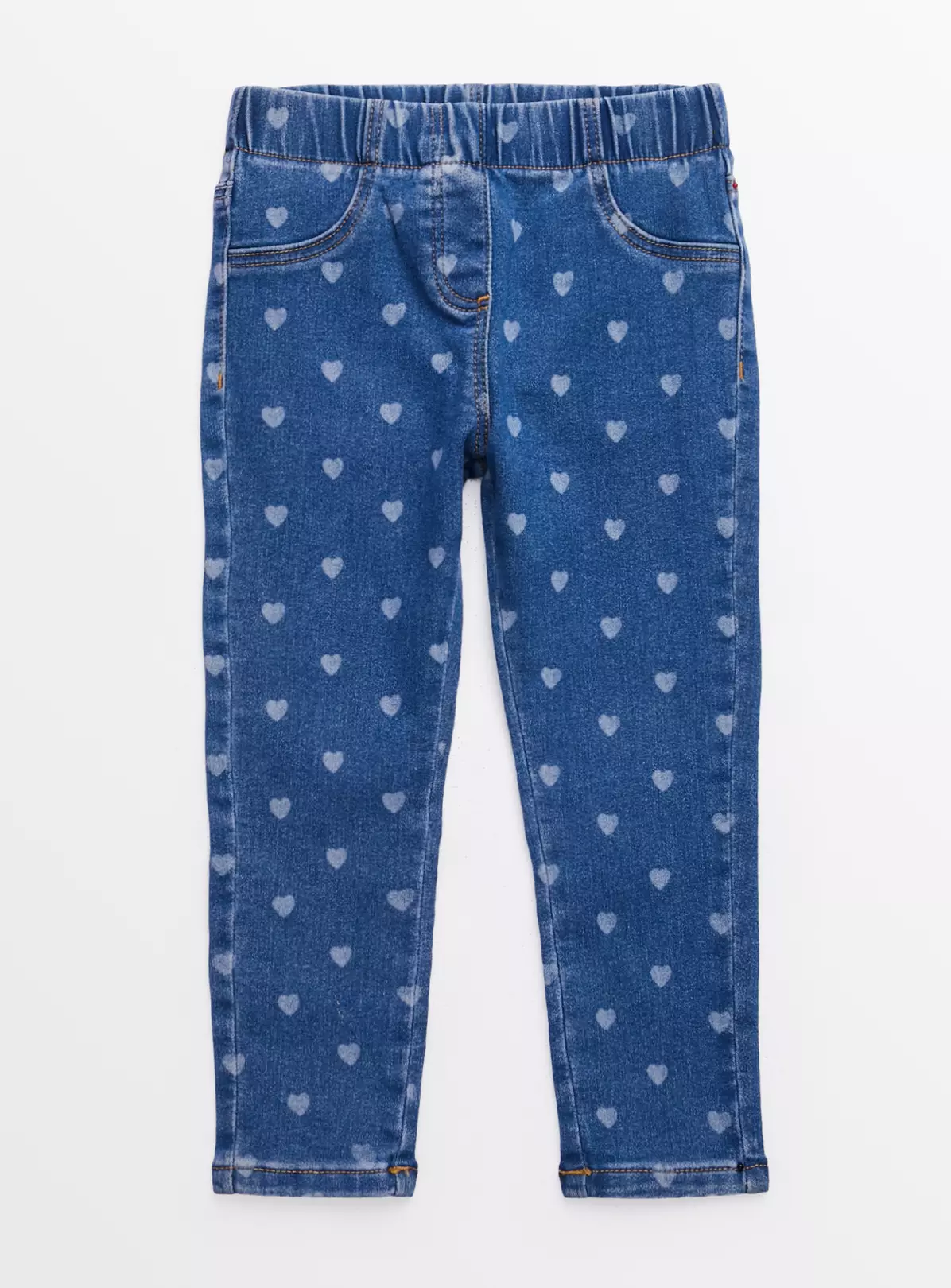 Super stretchy and easy to wear, your little trendsetter will love these funky heart print, blue denim jeggings. We see them with a long sleeve top and trainers!