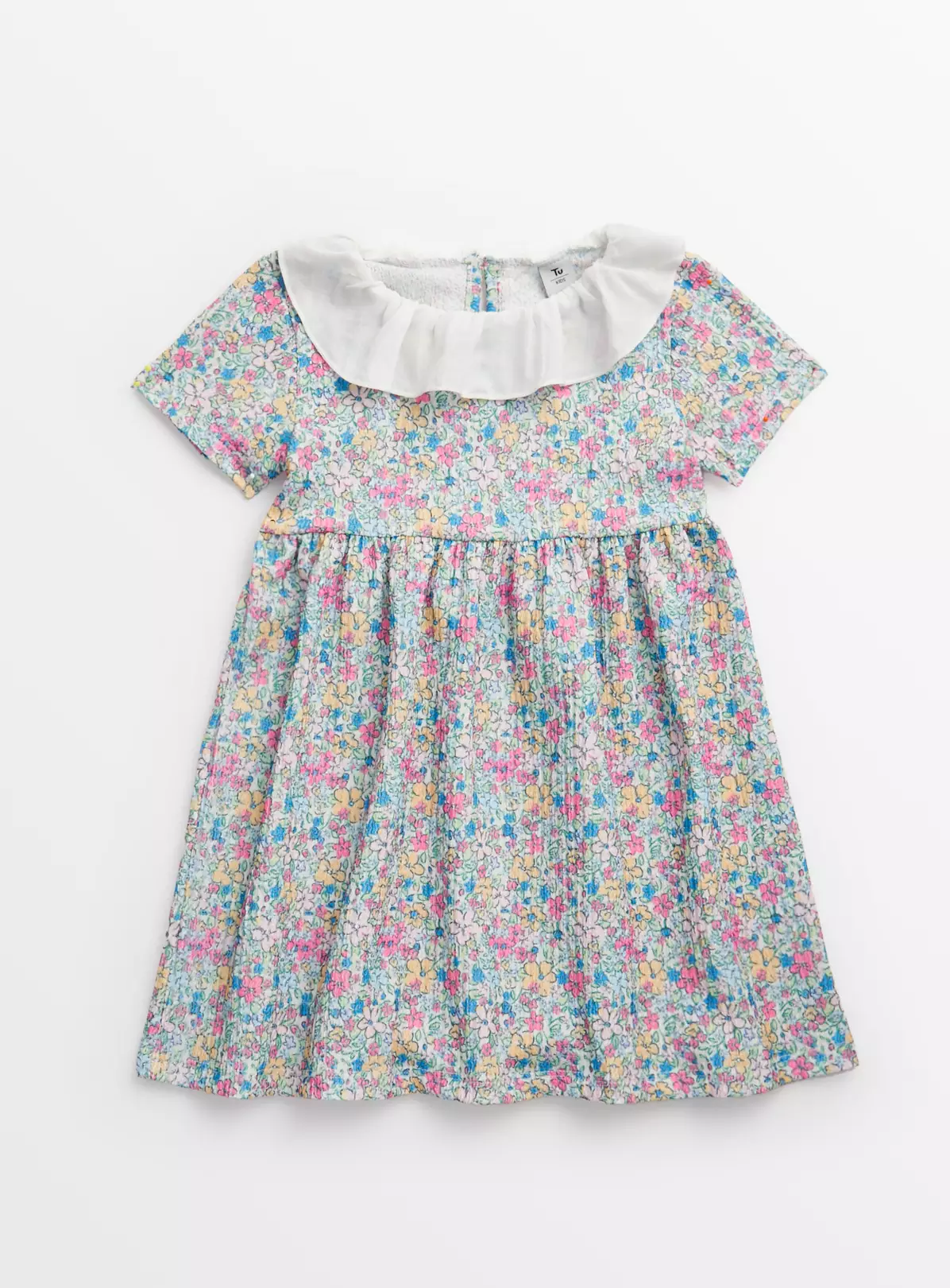 The perfect option for summer days and getaways, our stunning dress has it all going on. In a ditsy print crinkle fabric with an oversized collar, it’s crying out for some strappy sandals to finish off their mini look.