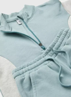 Our blue and grey sweat set is perfect for their downtime days. Cotton rich, the top has a cosy funnel neck with a half zip and the bottoms have cuffed ankles to lock in the warmth. They’ll love it!