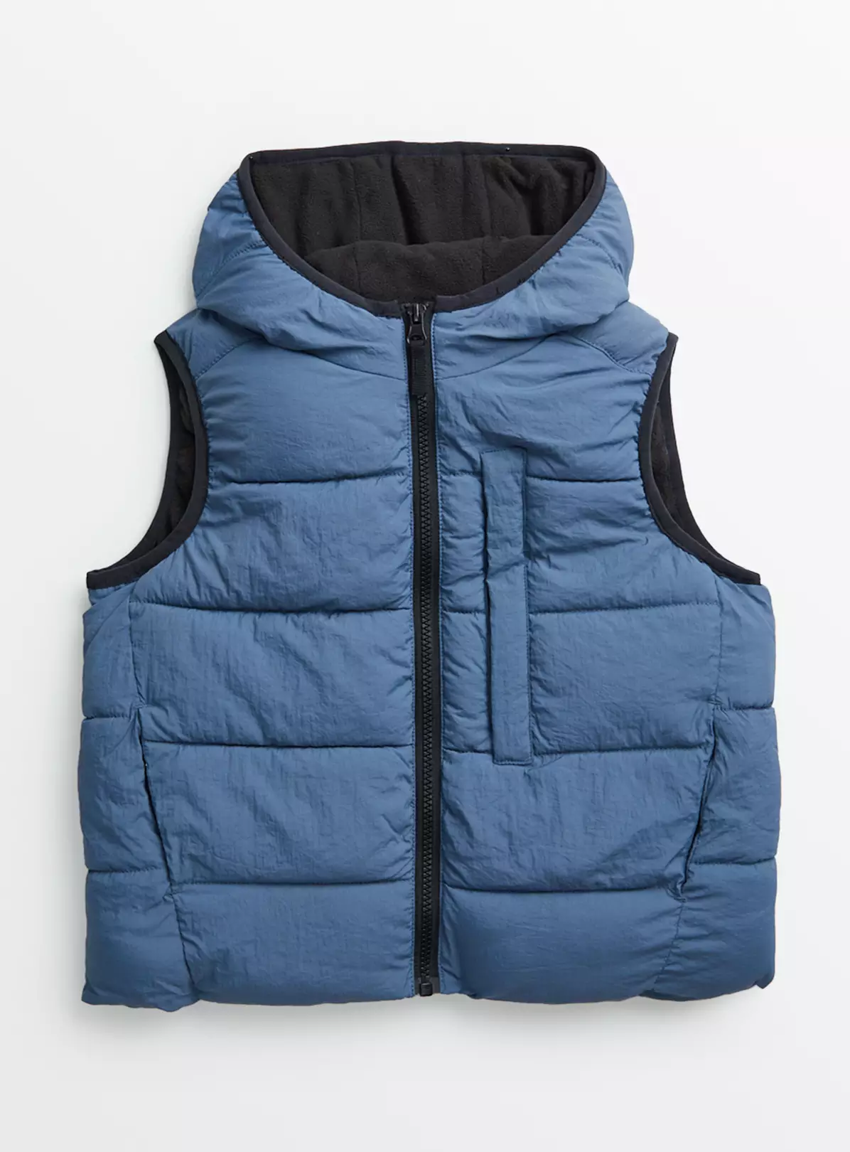 Keep your little adventurer warm all winter in this blue gilet! With a handy hood for those rainy days, it also has a super soft fleece lining. Team with a long sleeve tee and jeans, and they’re good to go!