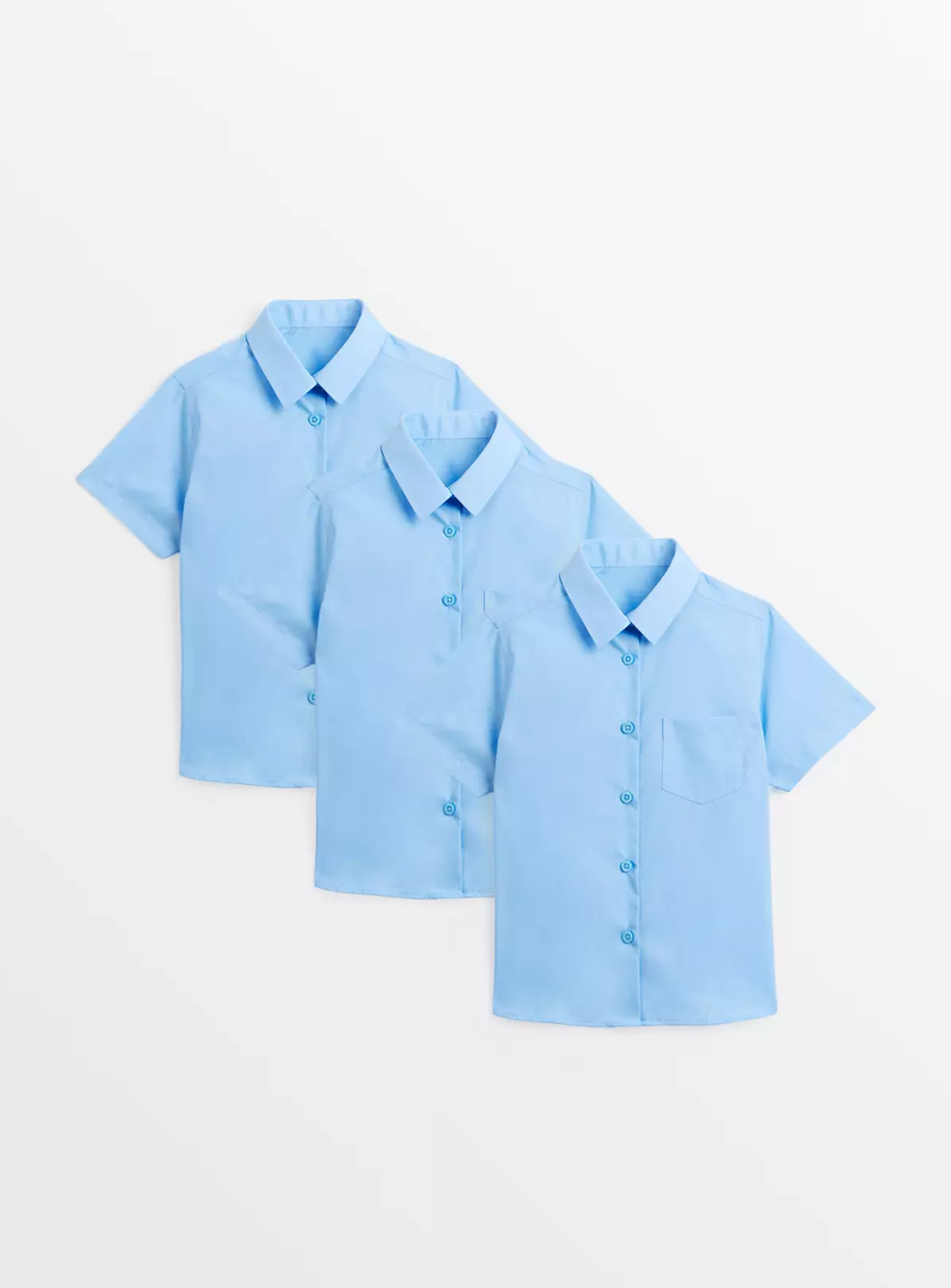 Stock up on the back to school essentials with this great value pack of three Girls school shirts. Available in blue or white, these short-sleeved shirts come with a single chest pocket and collar.