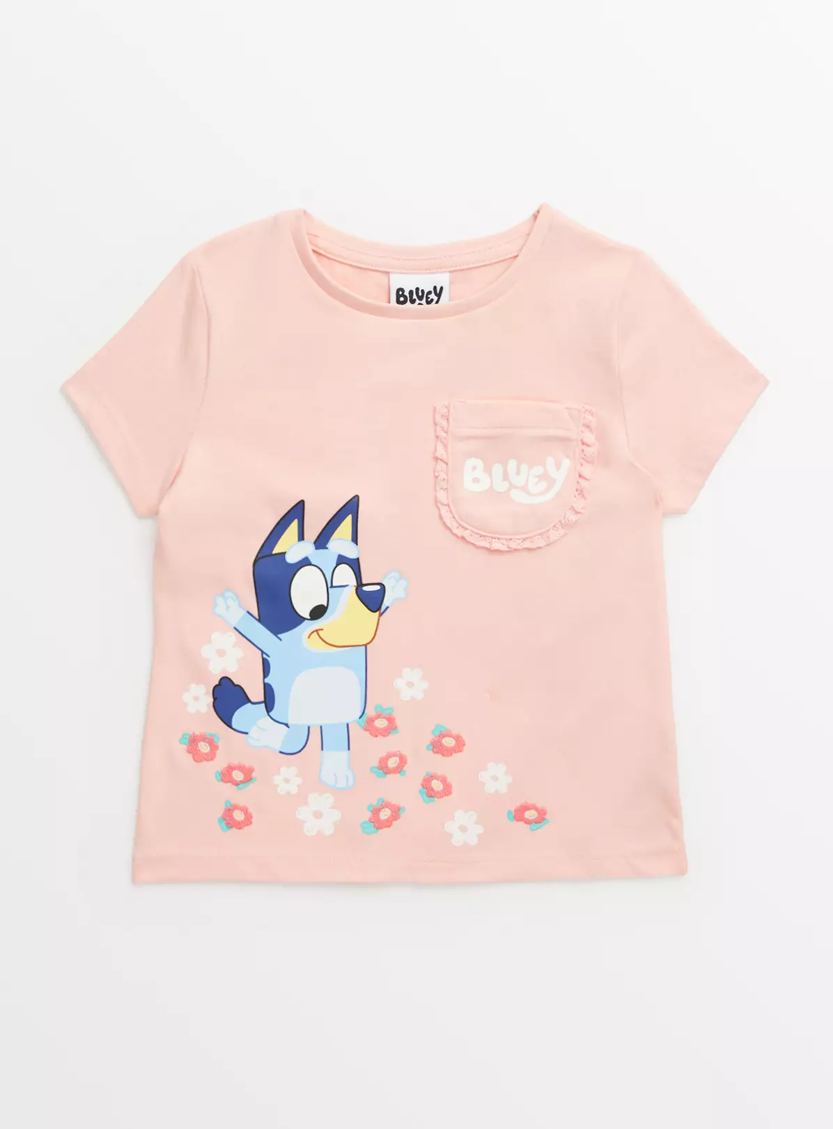 Our super cool classic t-shirt features a cute Bluey character print to the front and comes in a pink short sleeve design. Perfect for pairing with their jeans or joggers!
