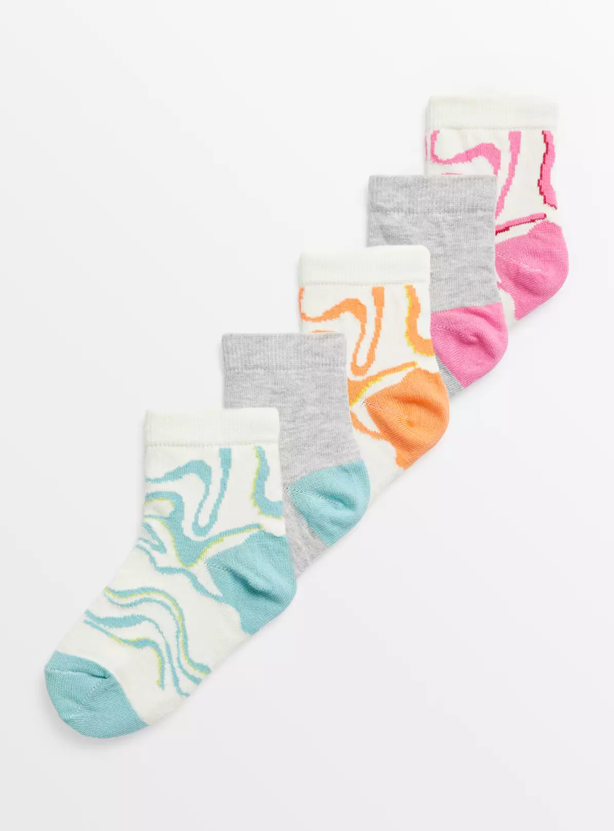 Refresh their essentials with our 5 pack of marble effect ankle socks! In a variety of bright shades, our ankle socks come in comfy cotton-rich blends, perfect for everyday wear!
