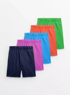 In a handy pack of 5, our cycling shorts are super stylish and super comfy! Crafted from a cotton-rich blend, they have elasticated waists for a snuggly fit. This set includes 1 red, 1 green, 1 purple, 1 navy and 1 blue pair.