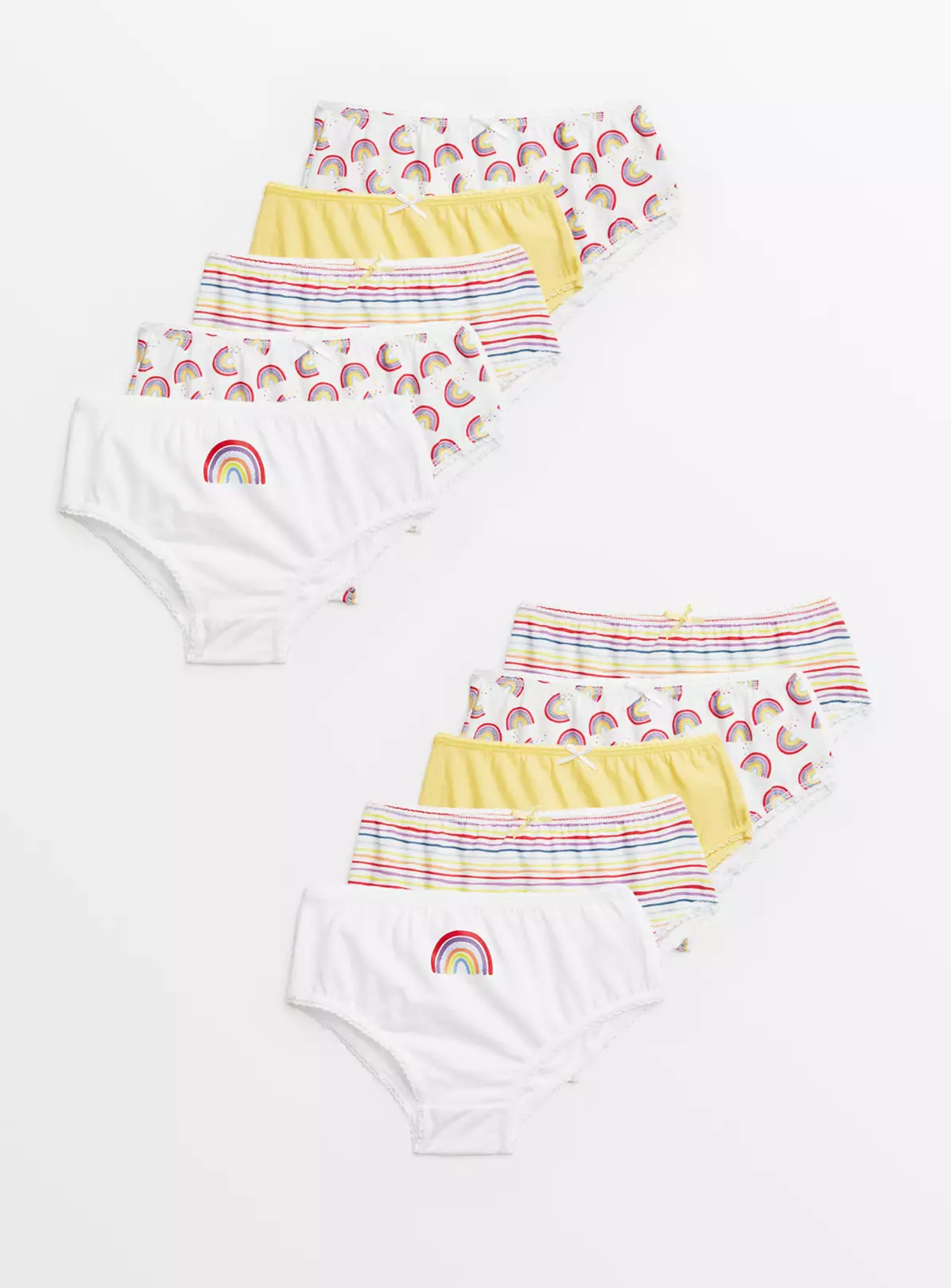 Perfect for adding a pop of colour to your little one’s essentials drawer, this ten pack of briefs lets you stock up in style. Made from pure cotton, you’ll get super bright rainbow designs in an assortment of shades.
