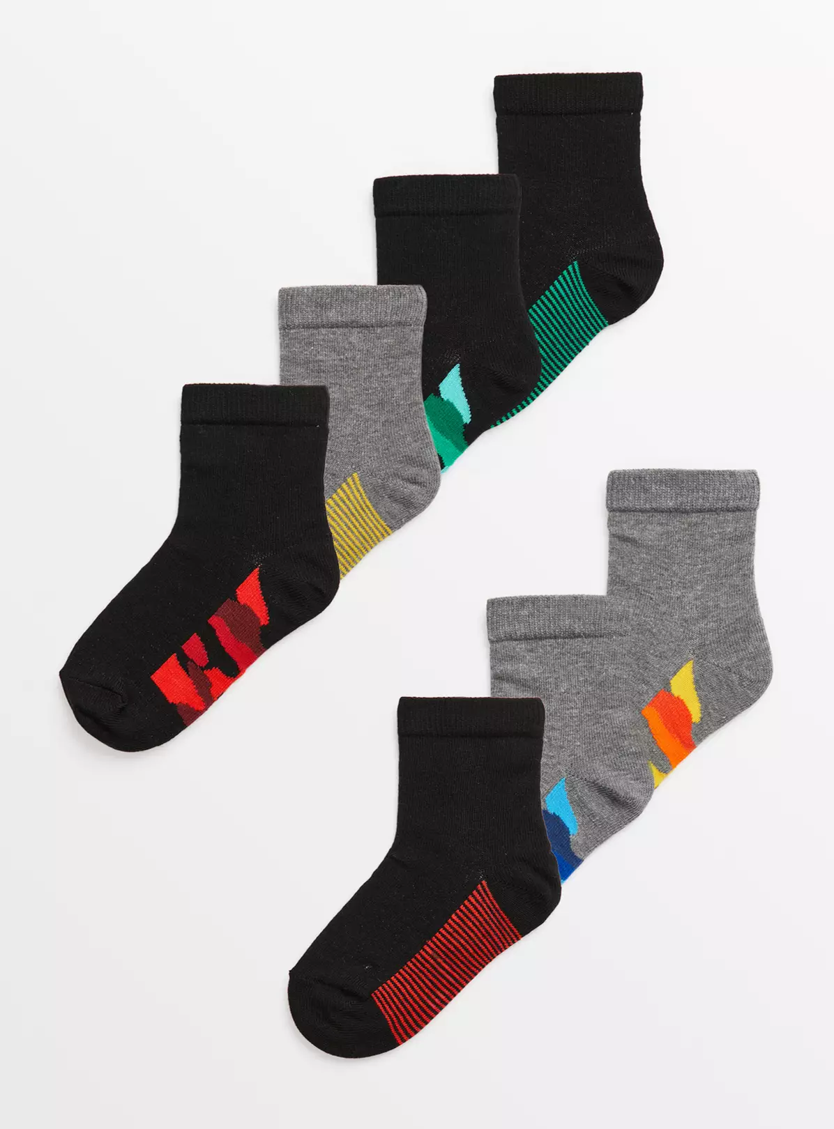 This handy sock set has a pair ready for your little one everyday of the week! They come in a variation of different styles on the foot bottom, including camo print and stripes! Cute, comfy and convenient!