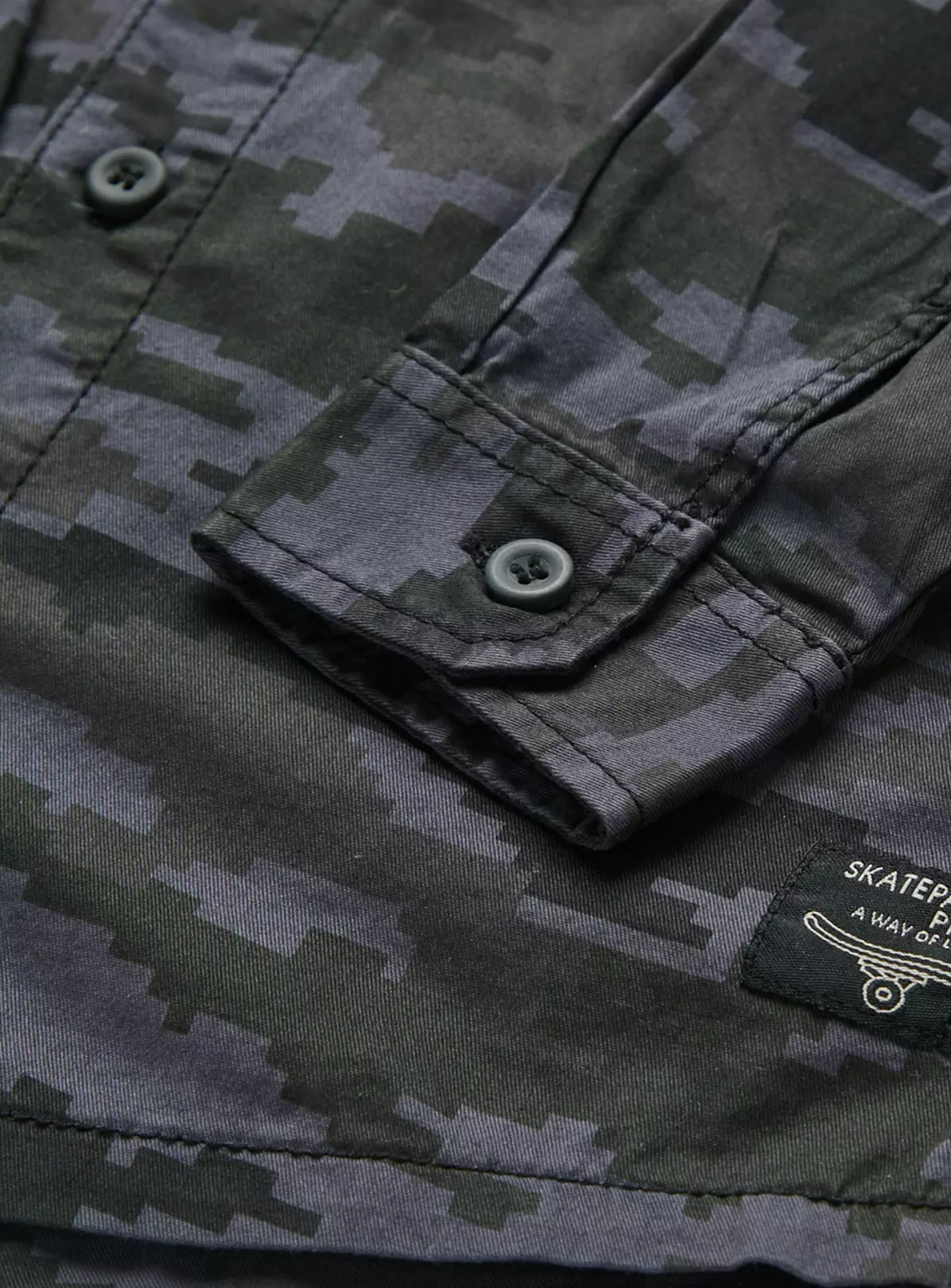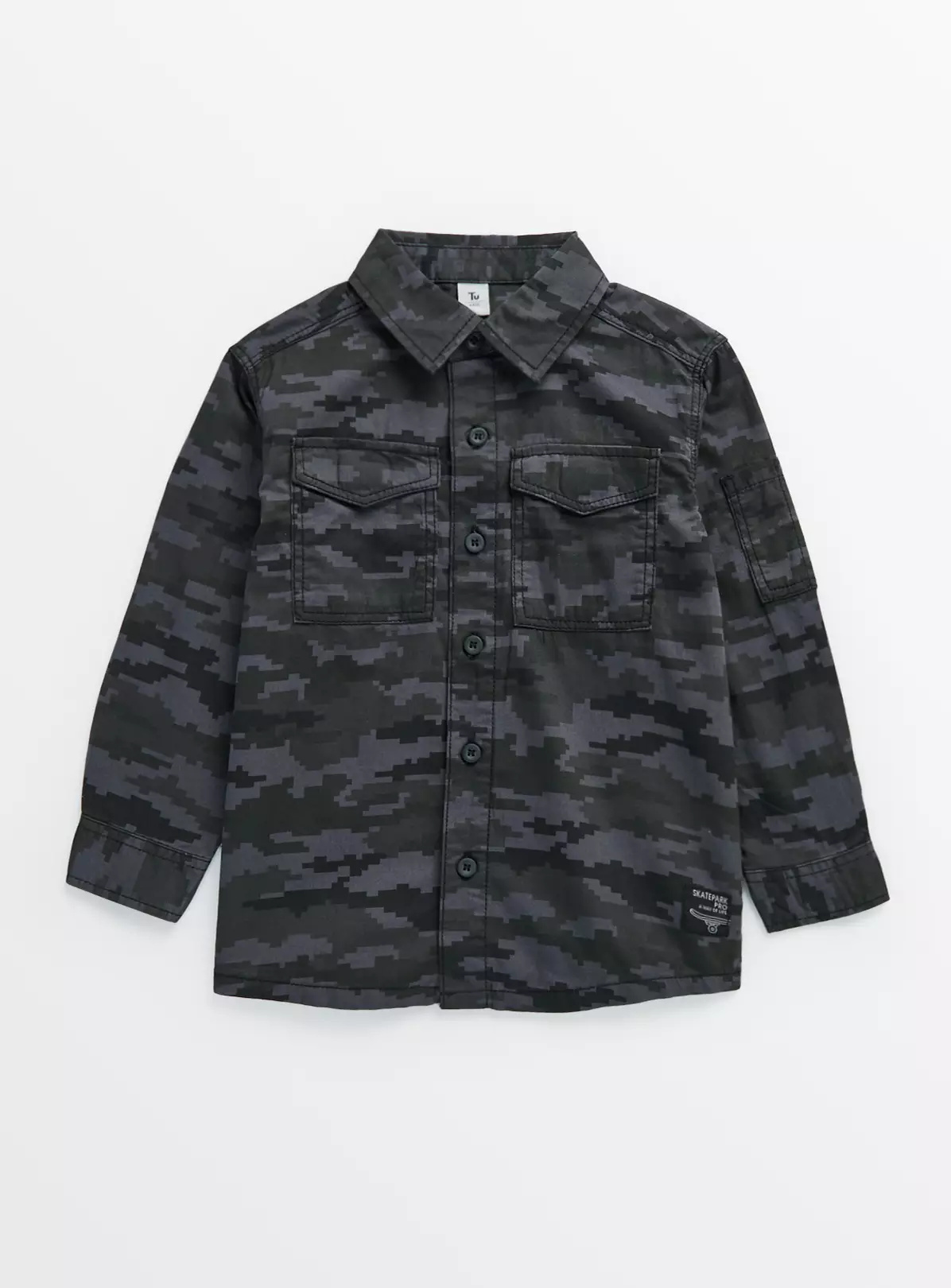Our new camo print shirt is so cool! Made from a pure woven cotton, it’s value-through and has two chest pockets. Team with cargo trousers or jeans for a super duper weekend combo they will love.