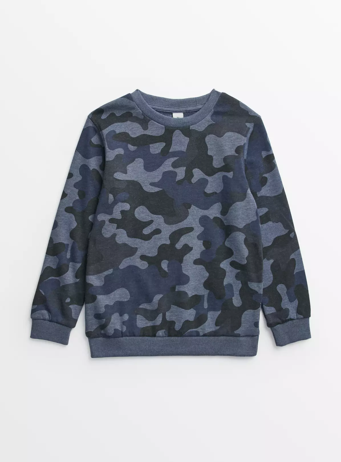Cool in camo! Our crew neck sweatshirt comes in charcoal and features an all-over camo print. Perfect for their days out, this sweatshirt comes in a comfy cotton rich blend. Team it with their denim jeans or joggers!