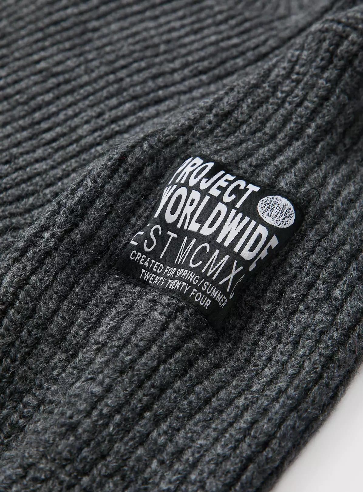 Keep them snuggly and warm during the chilly months with our charcoal grey jumper. Made with a ribbed knit construction it has a crew neckline and trendy project label to the arm. Team with jeans for the perfect autumn/winter combo.