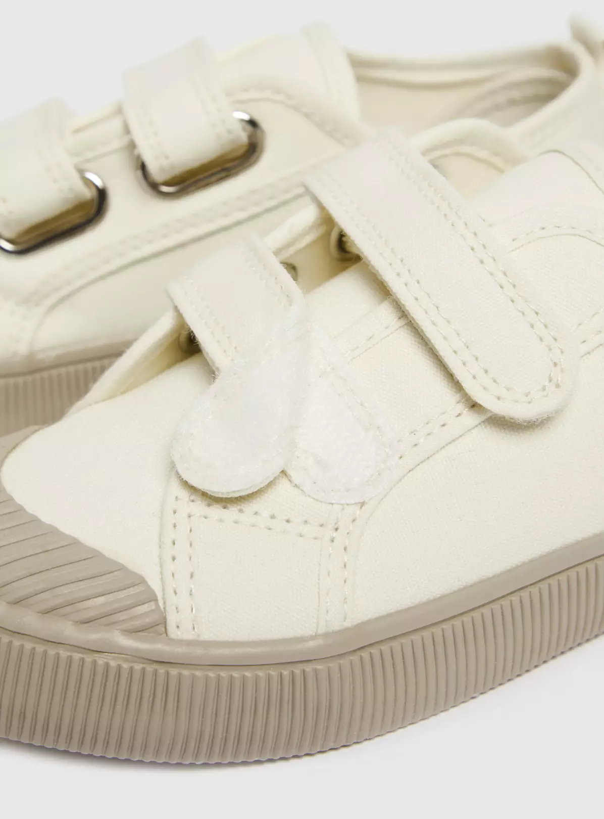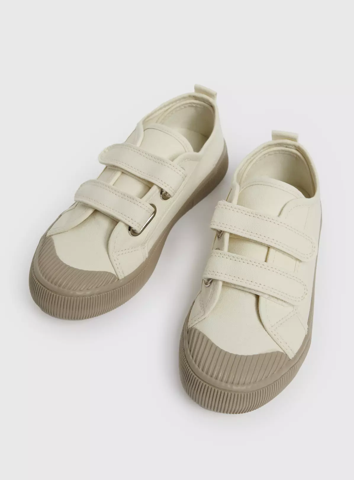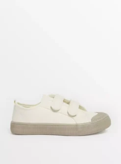 Refresh their shoe collection ready for summer with our cream canvas trainers! They feature gum soles and have double straps with one touch fastening, designed for hassle-free dressing.