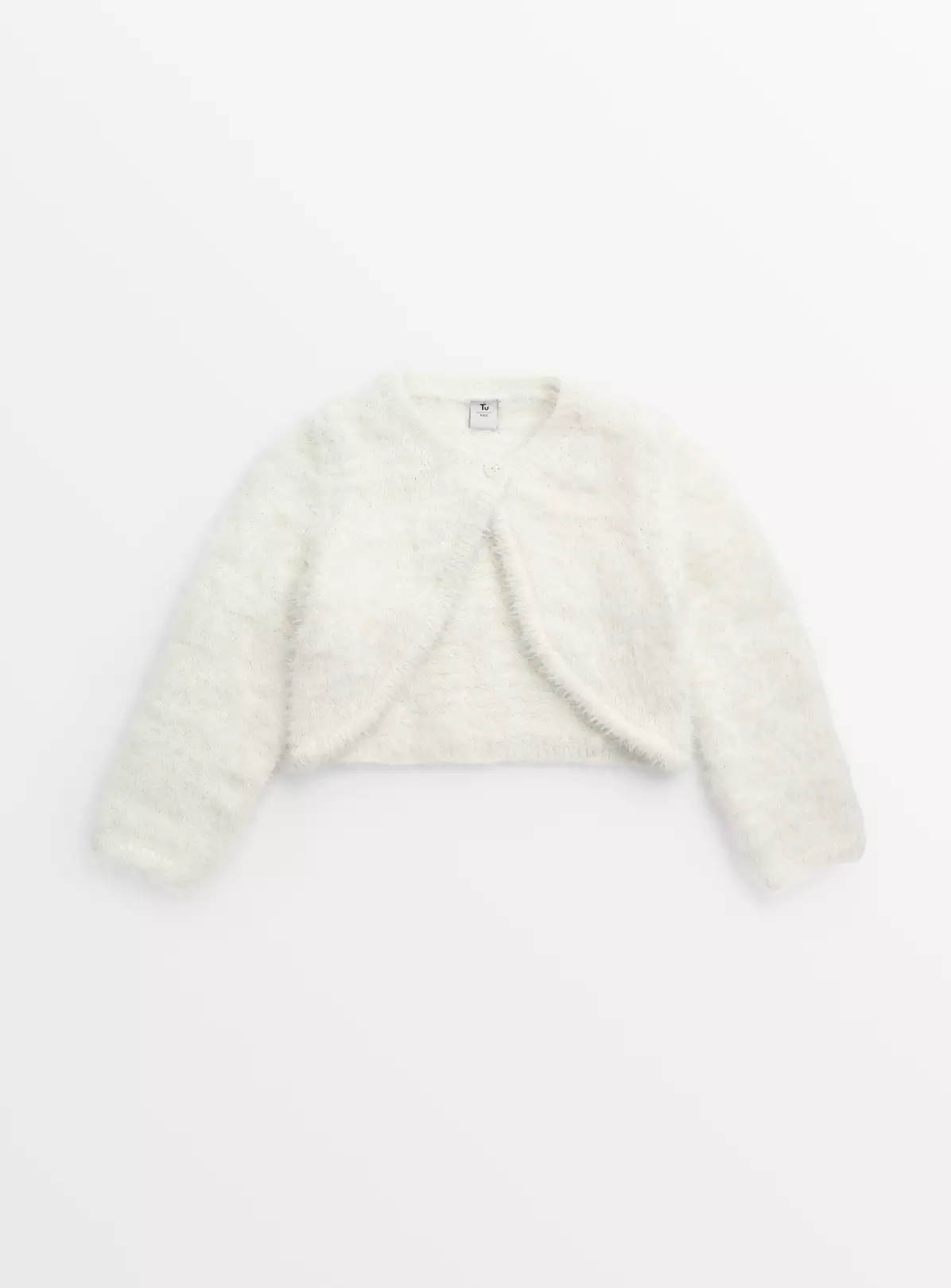 They’ll love our cute little cream shrug. Perfect for popping on over a dress for an extra layer, it fastens with a single value and is so cuddly to touch!