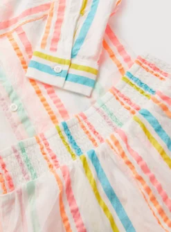 Perfect for their holidays, our stripe shirt and shorts set comes with accents of neon to pep up their mini look, ready for summer.
