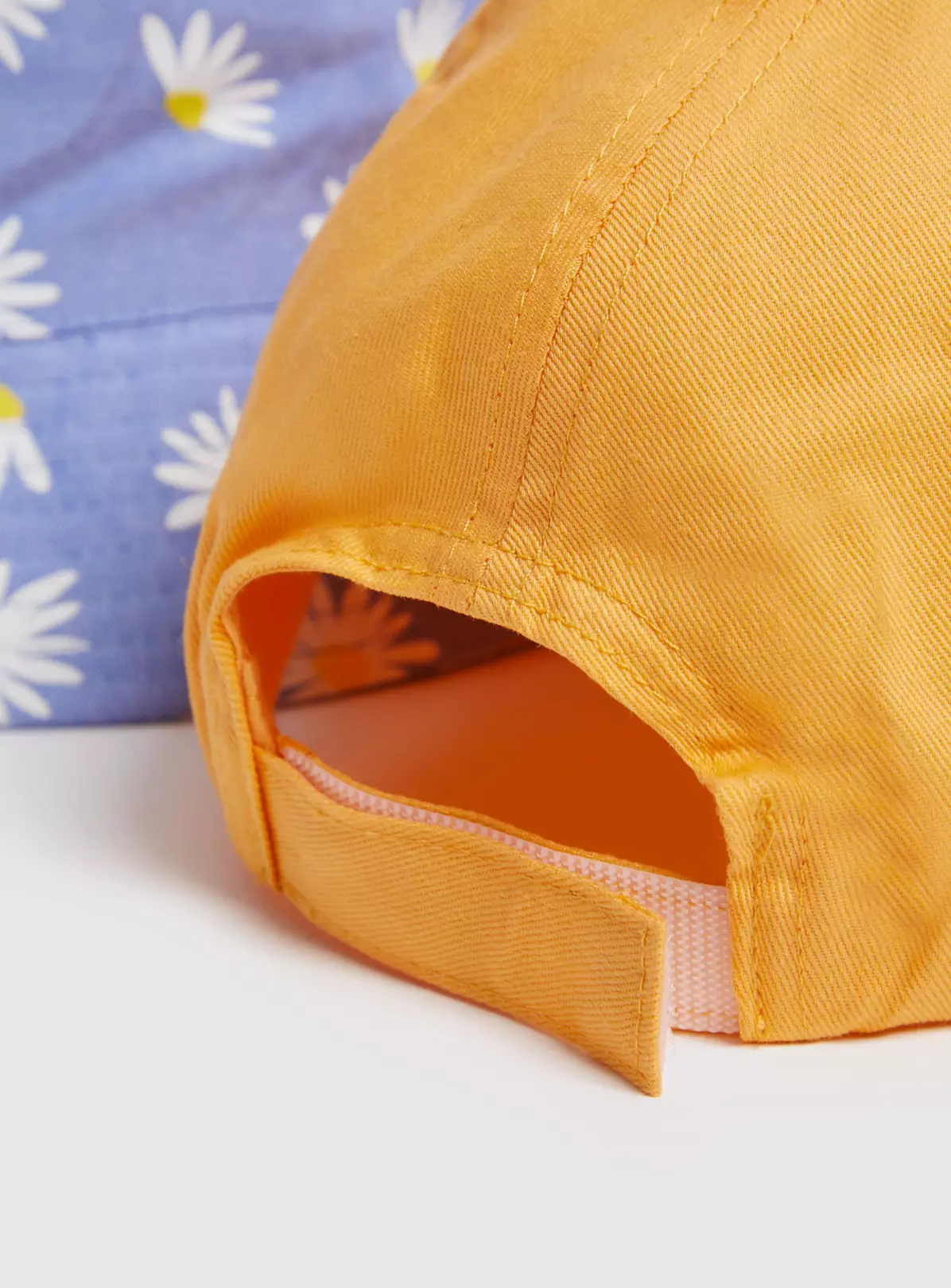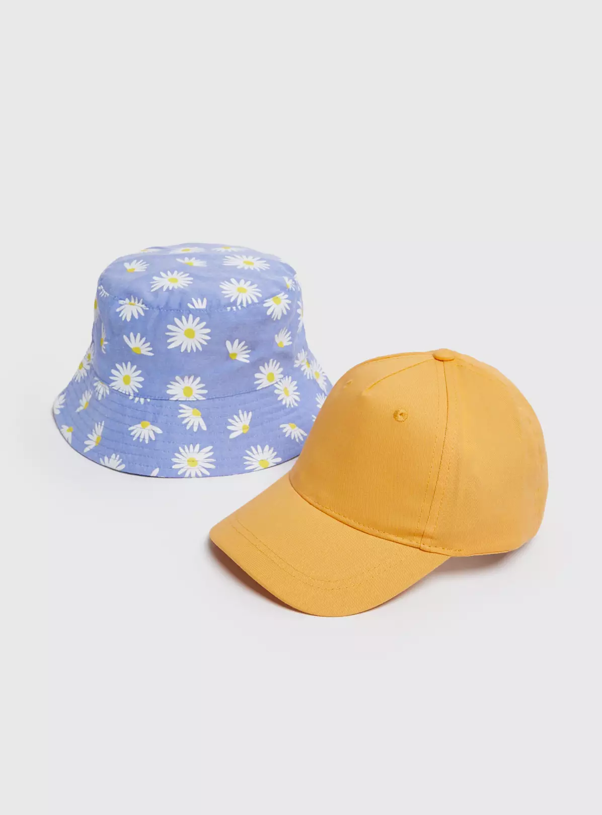 Our set of 2 hats are perfect for the summer heat. This pack includes 1 yellow cap and 1 blue bucket hat which comes in a lovely daisy design! They’re a must-have for their little summer collection!