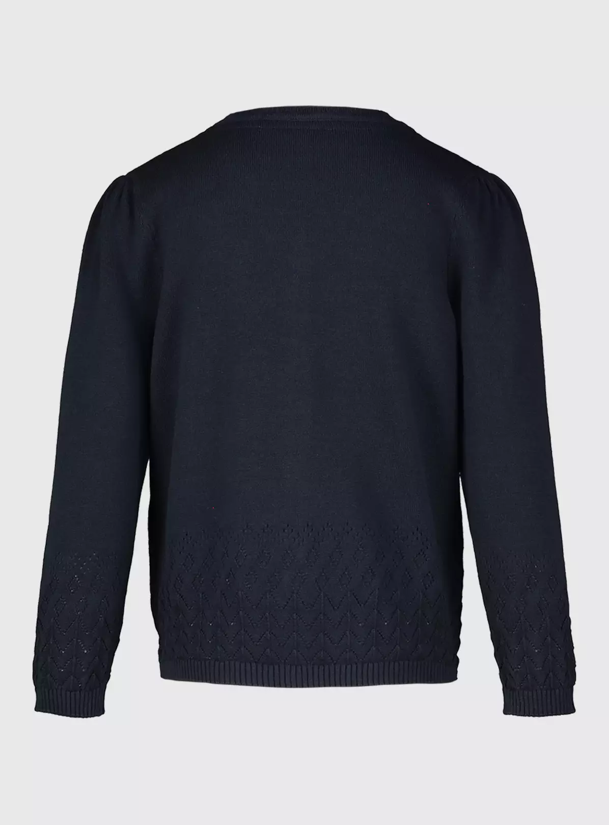 In a very dark navy shade, this pointelle knit cardigan is perfect for layering over their school polo or shirt next term. With flower shaped values, it’s made from pure cotton for a soft and comfortable feel, and even has a little name tag inside so they can write their name in!