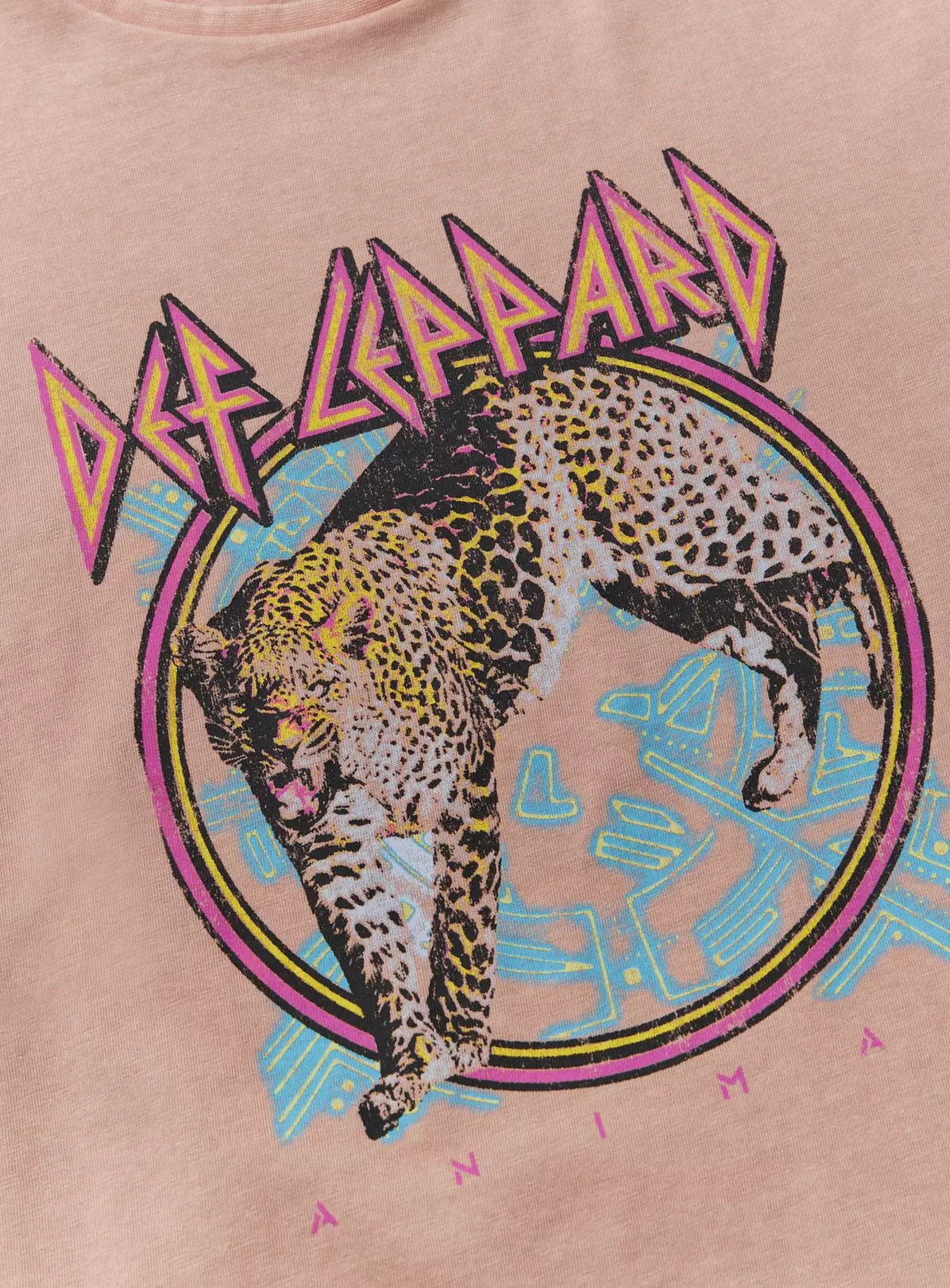 Inspired by the iconic rock band Def Leppard, our graphic t-shirt is a super cool staple for their collection! In pink, it features a graphic print on the front and has short sleeves. Perfect for pairing with denim!