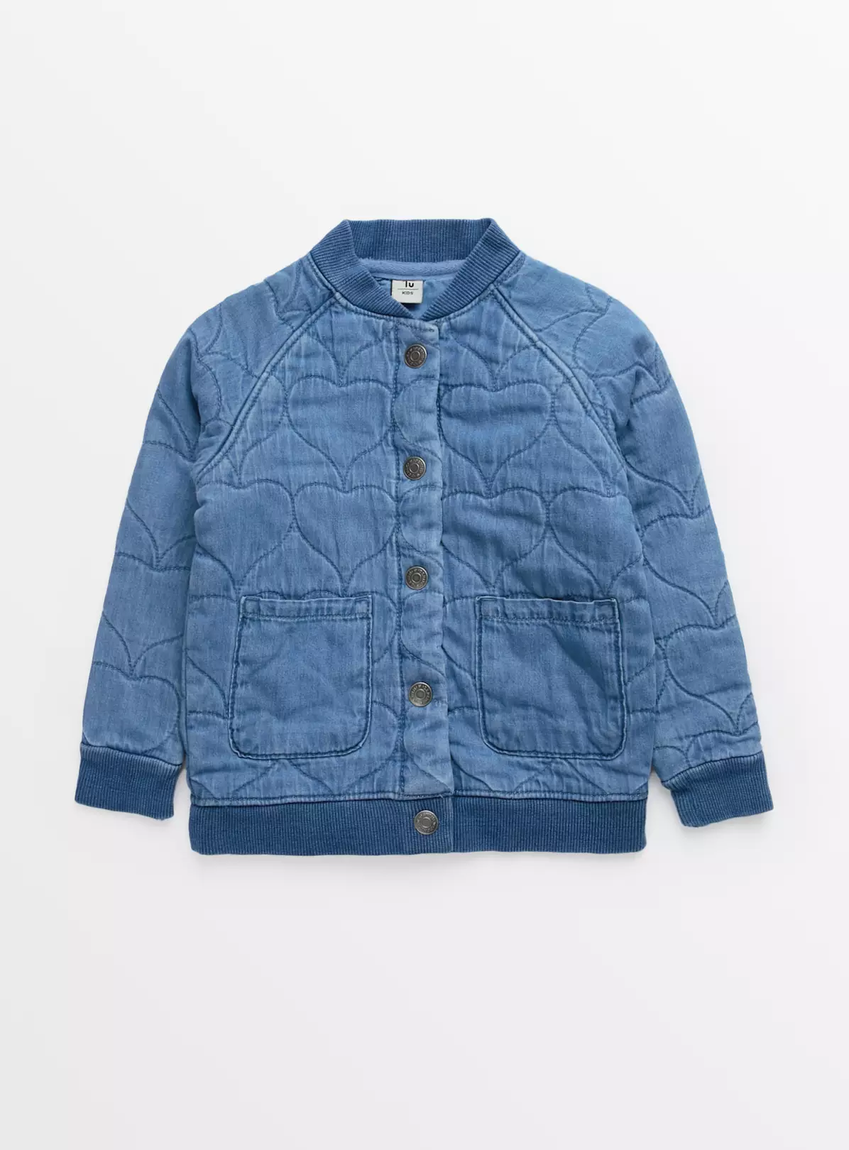 Our denim bomber jacket is the perfect pick for layering up! It comes in a cute heart quilted design for an extra comfy fit on those chilly days. Team it with their leggings and trainers for the ultimate look.
