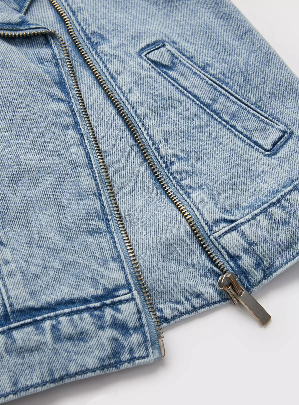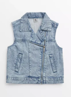 Add a rock vibe to your little trend setter’s wardrobe with our denim biker gilet! In a sleeveless style, it comes in a blue acid wash effect for a super cool look. It features a zip fastening and side pockets. Perfect for spring!