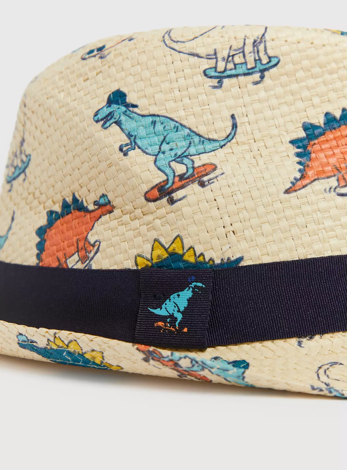 Keep your little one sun safe in style with our straw hat! Featuring a super cool dinosaur design, it has a black contrasting band for an extra fun look! Perfect for holidays!
