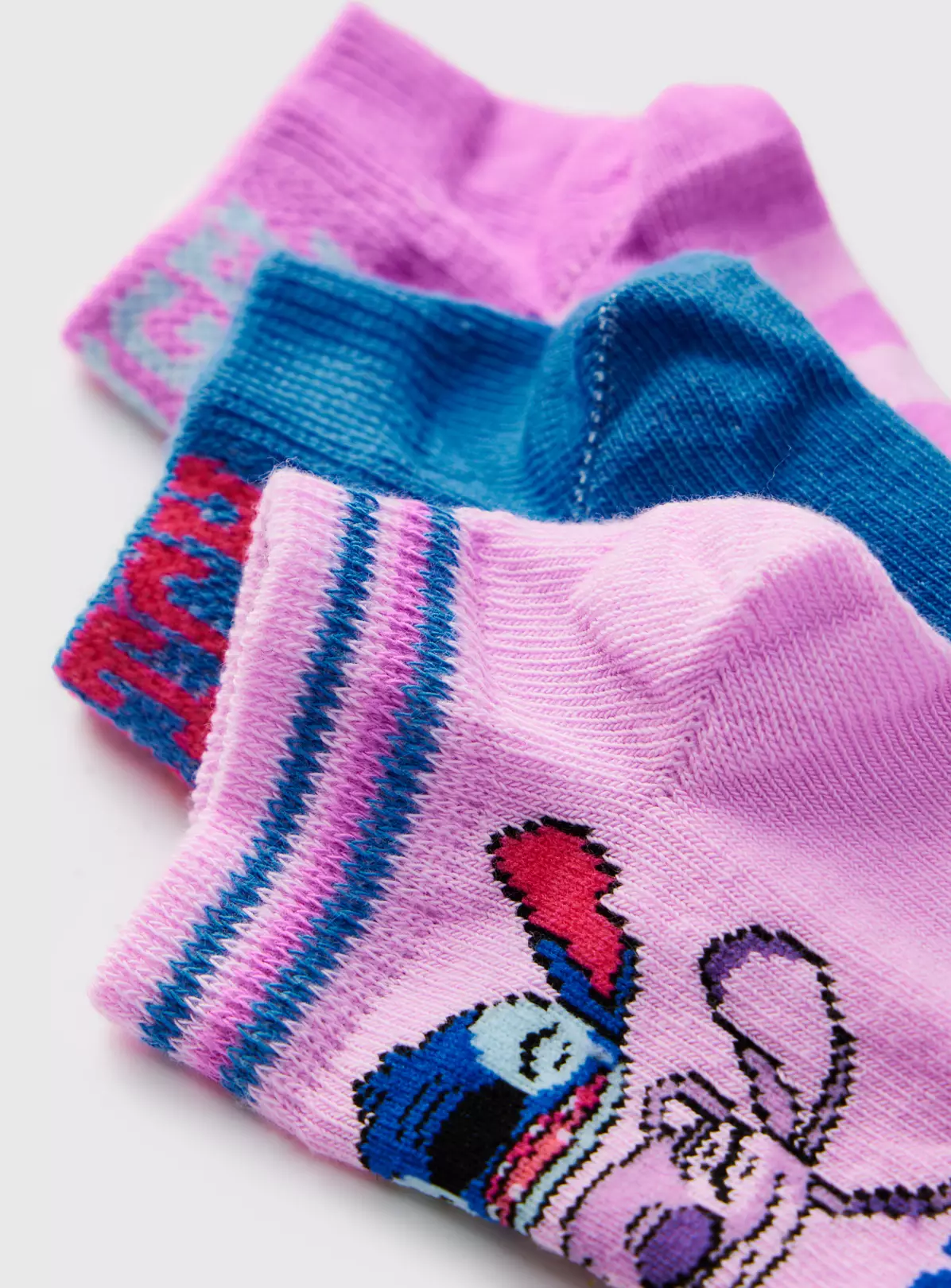 The perfect pack for Lilo & Stitch fans! Our 3 pack of socks include 1 pink, 1 lilac and 1 blue pair. Elevated by iconic designs of Lilo & Stitch, they’re a must-have for your Disney lover’s collection!
