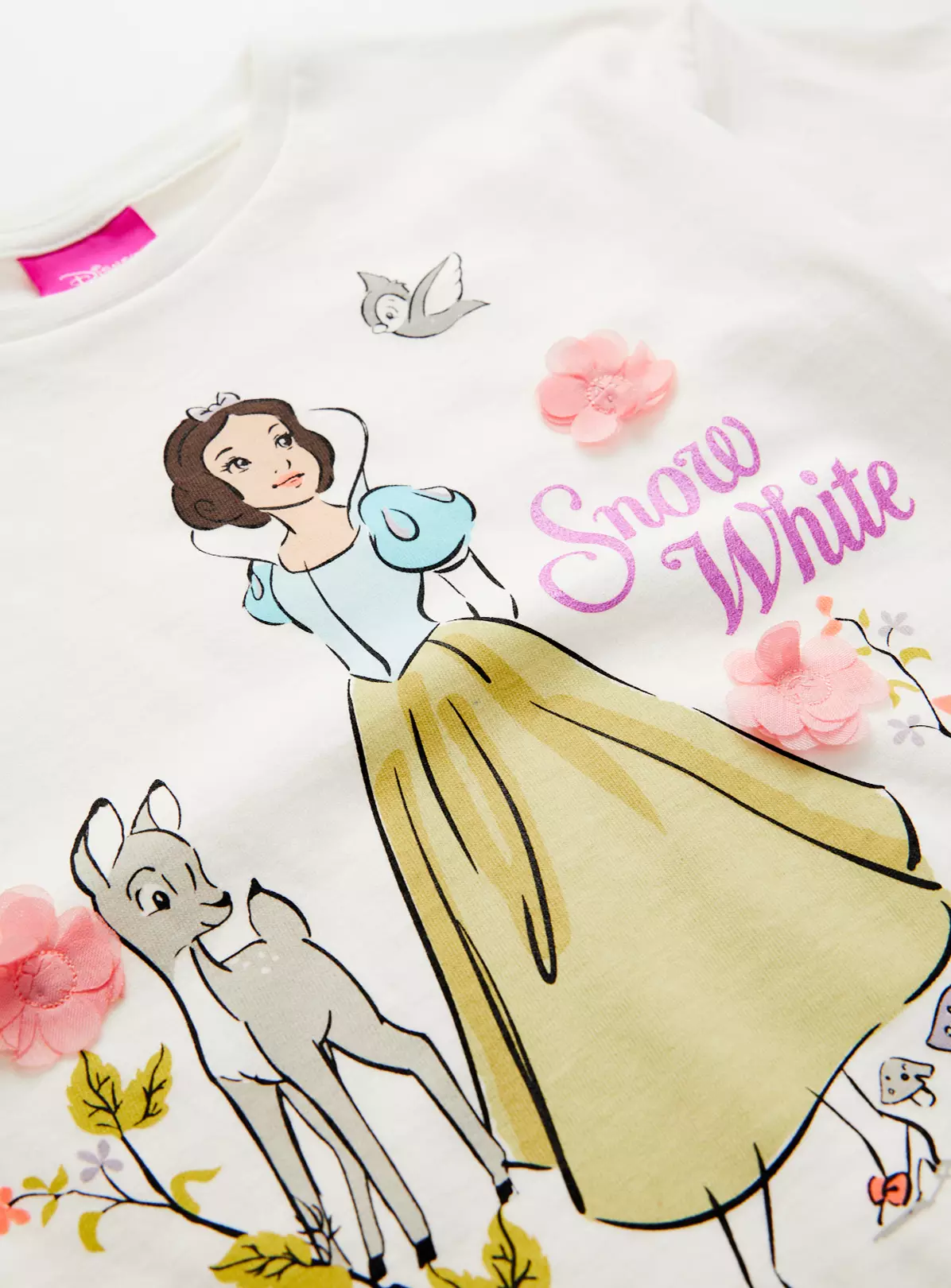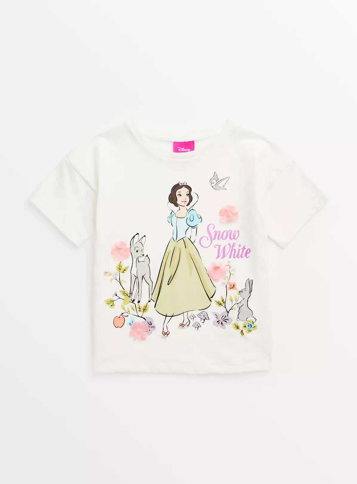 Do you have a little Snow White fan on your hands? Then we’ve got the perfect t-shirt! It comes in white with short sleeves and a lovely character print to the front. Team with their favourite jeans for an outfit they’ll love to put on!