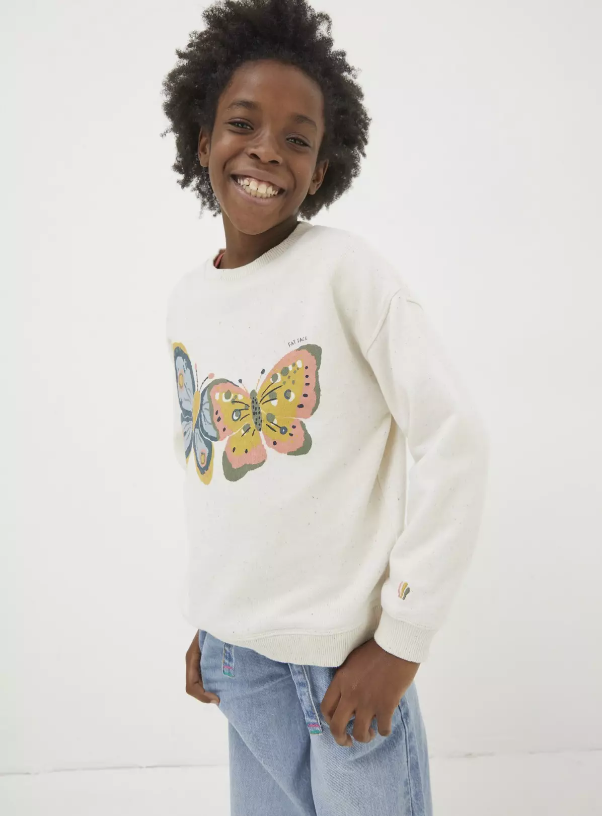 Get them ready for the day with our cool crew neck sweatshirt. Made from supersoft cotton and in a comfortable fit, it features a beautiful butterfly design, and ribbed cuffs and hem to lock in the warmth. Style it over a t-shirt with jeans, or wear alone on warmer days.