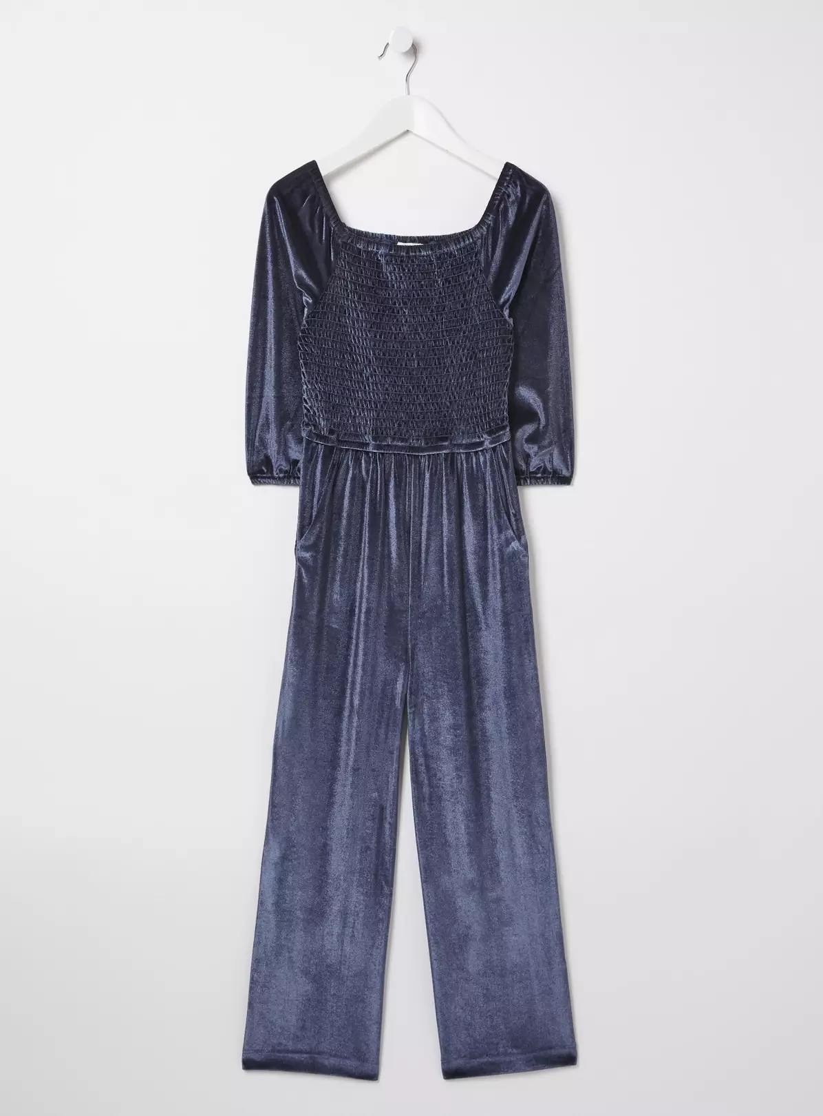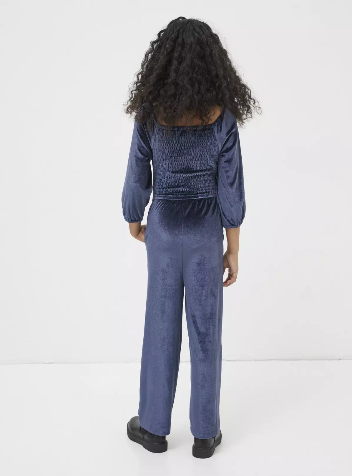 Get the little one all dressed up in this pretty velvet jumpsuit. With a snug shirred top, side pockets and cute wide leg trousers, this lovely set is great for all the festivities ahead. Style it up with a warm jacket, little bag and sparkly flats for their extra special outfit.