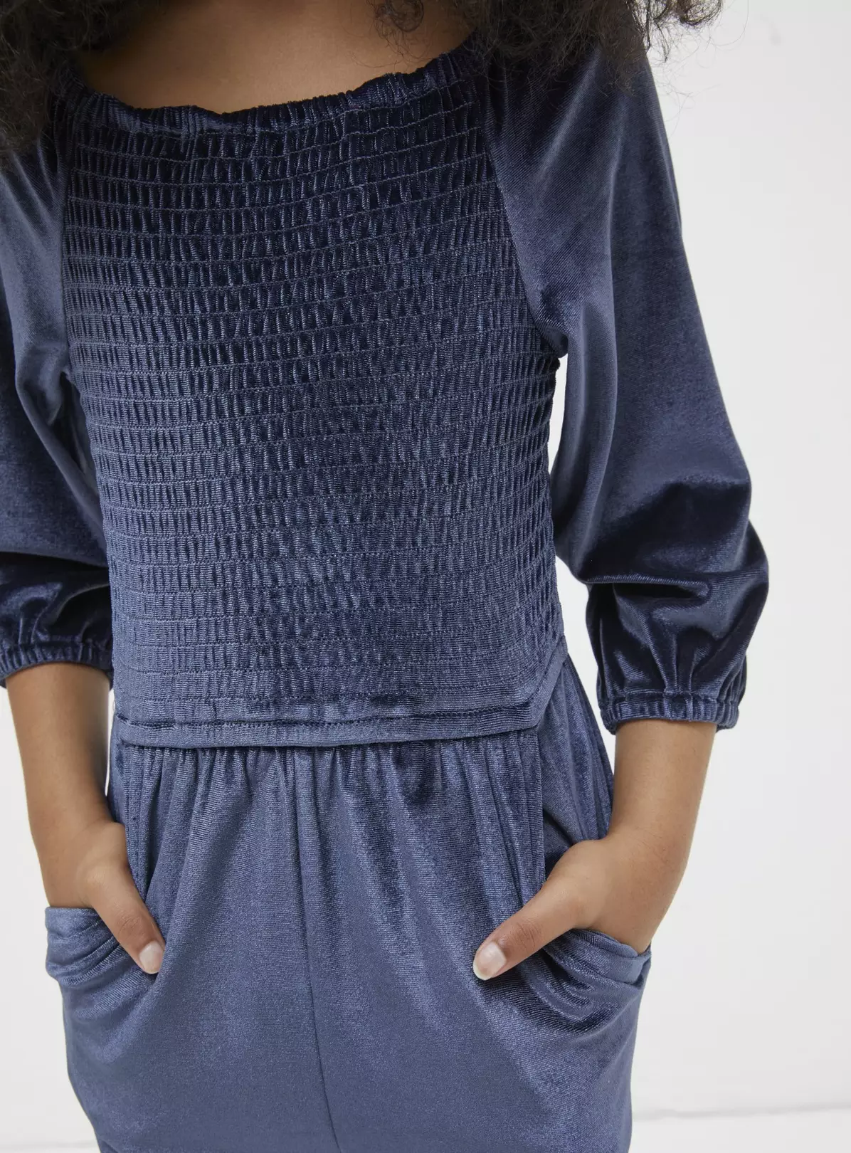 Get the little one all dressed up in this pretty velvet jumpsuit. With a snug shirred top, side pockets and cute wide leg trousers, this lovely set is great for all the festivities ahead. Style it up with a warm jacket, little bag and sparkly flats for their extra special outfit.