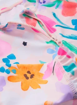 Your little one will have a blast splashing around in the water in this pretty all in one pink sunsuit. With a high neck for extra protection, frilly sleeves and a super pretty floral design, they’ll love it!