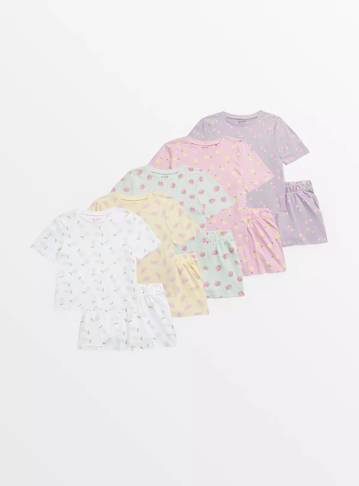 Update your little one’s nightwear collection with this adorable pack of pyjamas. Choose from a short sleeve t-shirt and shorts in 5 different fruity prints. Made from pure cotton and designed in a comfy relaxed fit, they’re easy, breezy and perfect for warmer nights.