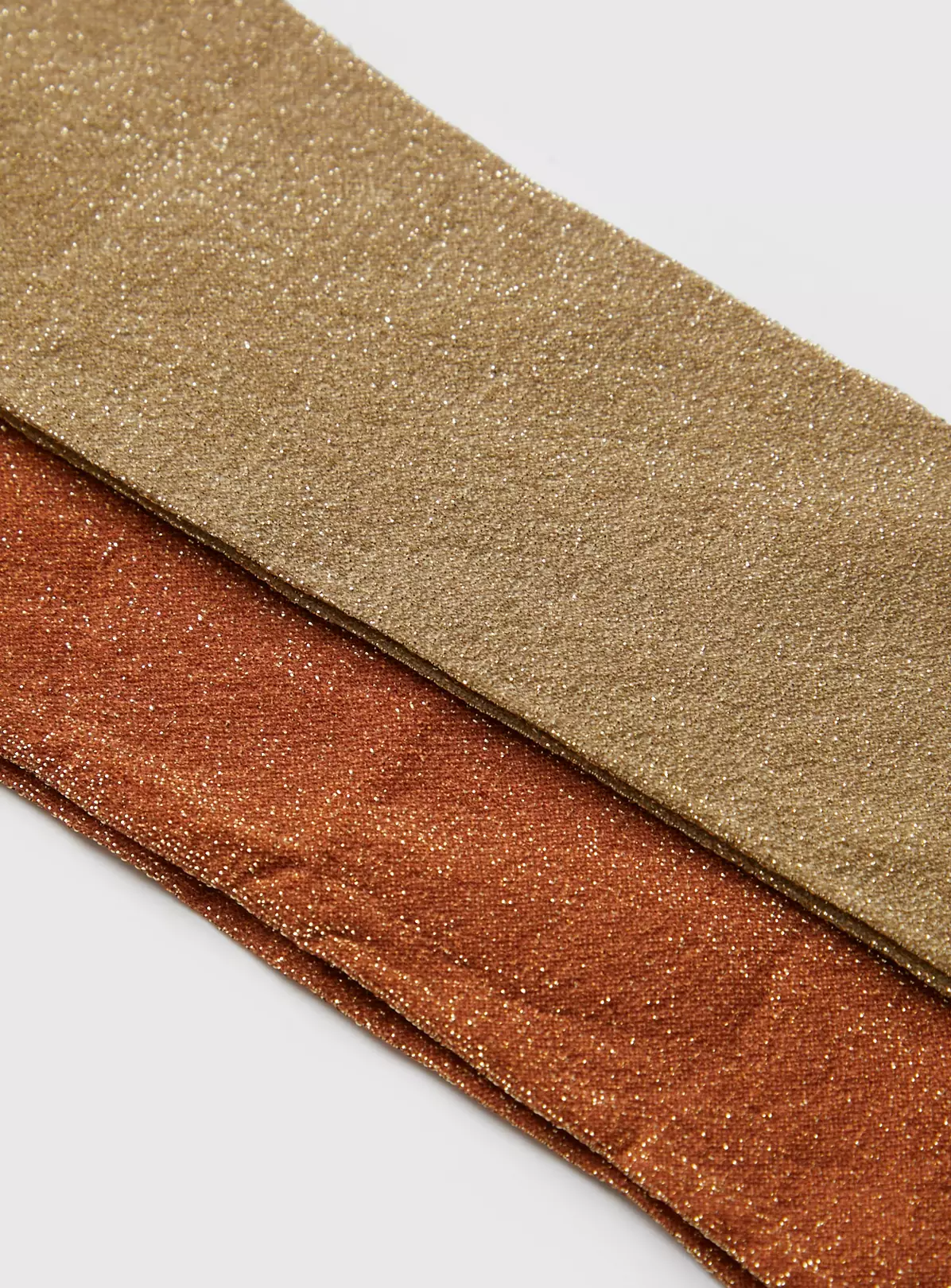 Shake up their tights drawer with this sparkly pack of 2! This set of opaque tights includes 1 orange and 1 gold pair. Perfect for parties, pair them under a velour dress for a glam little look!