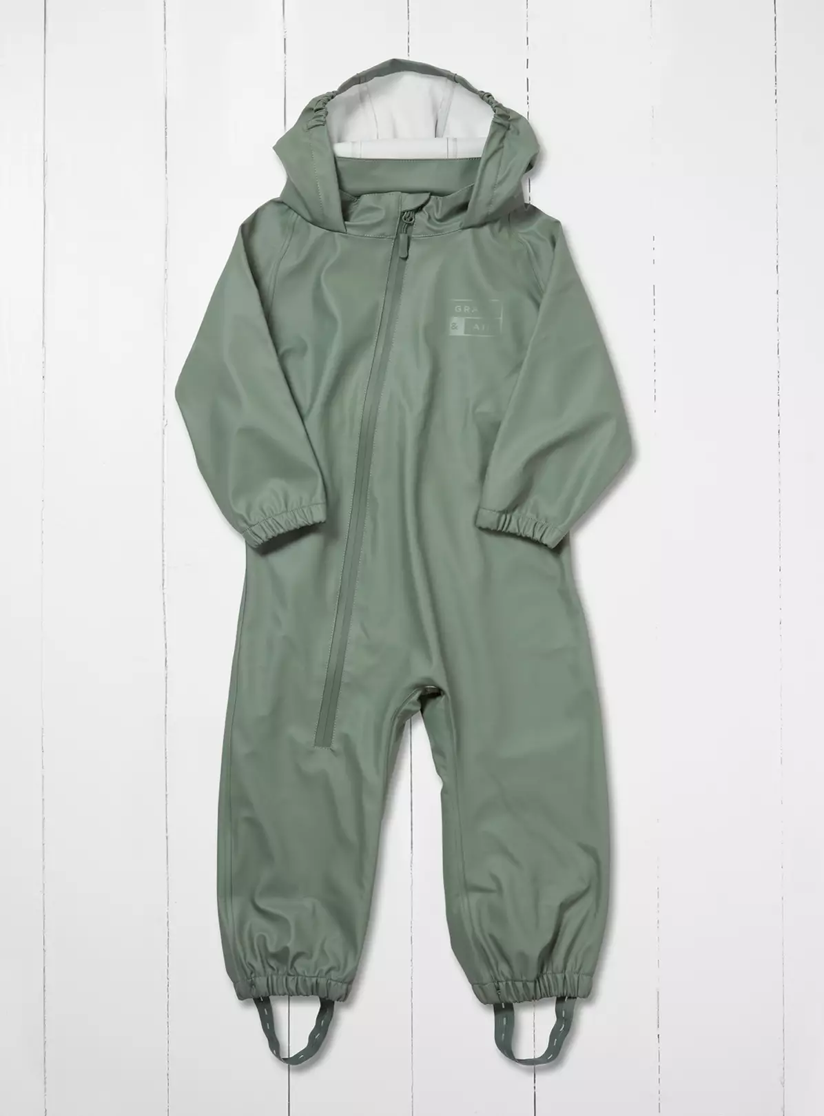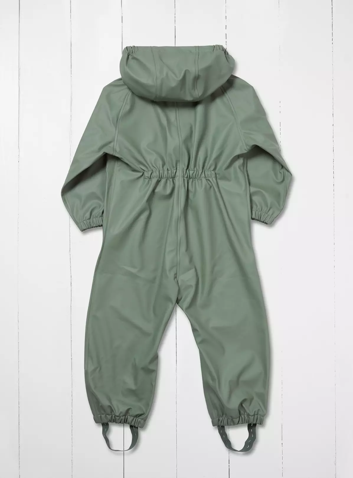 We’ve brought our nature loving shade of Khaki to our puddle suits. Blending a dreamy combination of soft moss and sage to create a neutral Khaki Green that pairs as happily with classic navy as it does with a modern rose. Our puddle suits are made from durable waterproof polyester fabric, with a polyurethane coating, giving the puddle suits a 5000mm waterproof rating and a 5000 g/m2 breathability rating. Our award-winning rainwear stands the test of time and keeps children dry on rainy days. Taped waterproof seams and a waterproof zip add extra protection. Featuring elasticated cuffs and back for a nice fit, this rainsuit can be worn over clothes. The versatile design of our puddle suit is great for both boys and girls. In this waterproof puddle suit, kids will be warm and dry on family outings whatever the weather.