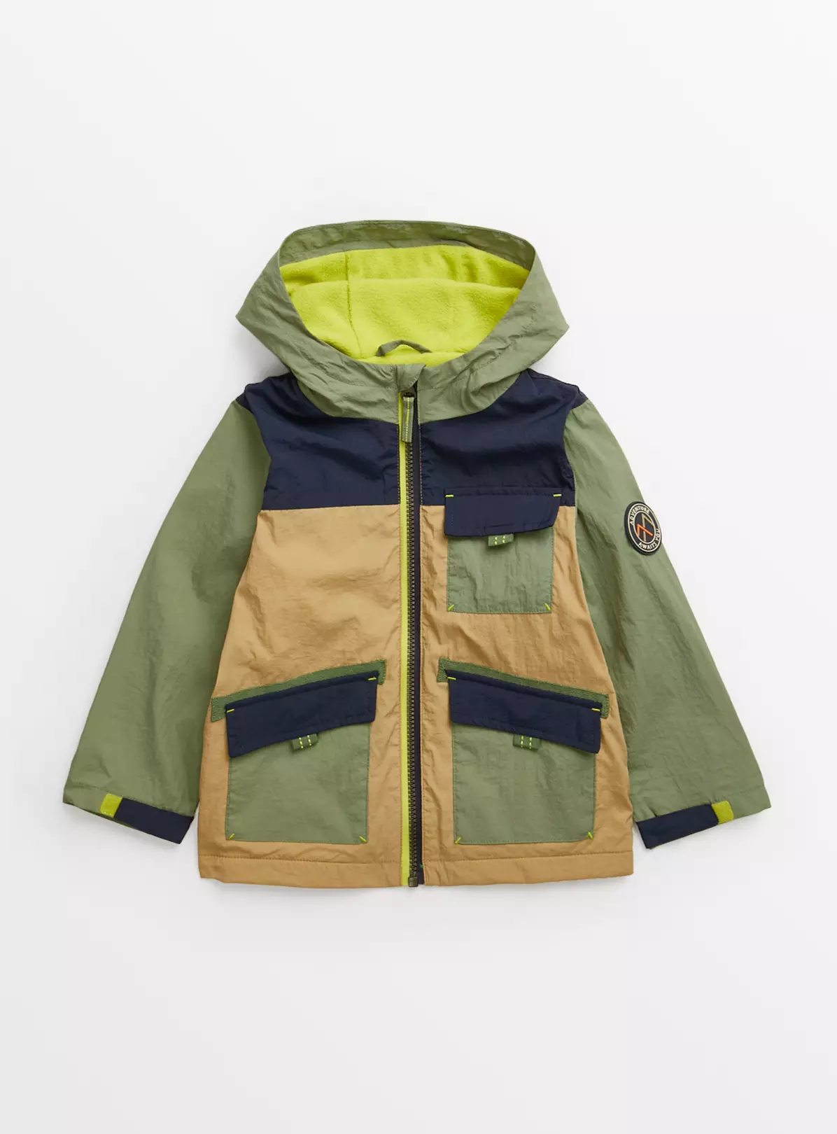 Stock up on essentials for wet and rainy days with our colour block mac coat! It features a handy hood, front pockets, zip fastening and has a super cosy fleece lining! The perfect pick for weekend walks and days spent out and about.