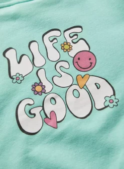 Add a cool vibe to their wardrobe with our green graphic print sweatshirt dress! It features a ‘Good Vibes’ slogan on the front with a printed design. Team it with jeans and trainers for a cool Spring look.