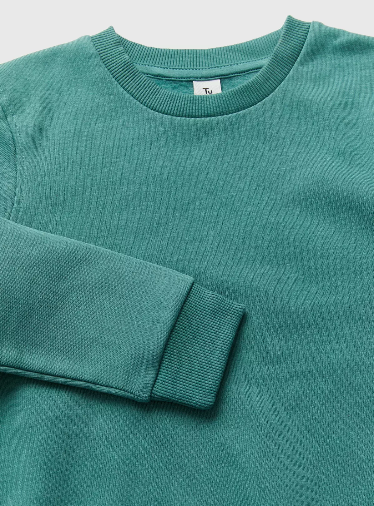 Check out this longline green sweatshirt, perfect for action packed autumn weekends. Made in a soft, cotton-rich blend, it has a classic crew neck and long sleeves. Team with denim to complete their mini look.