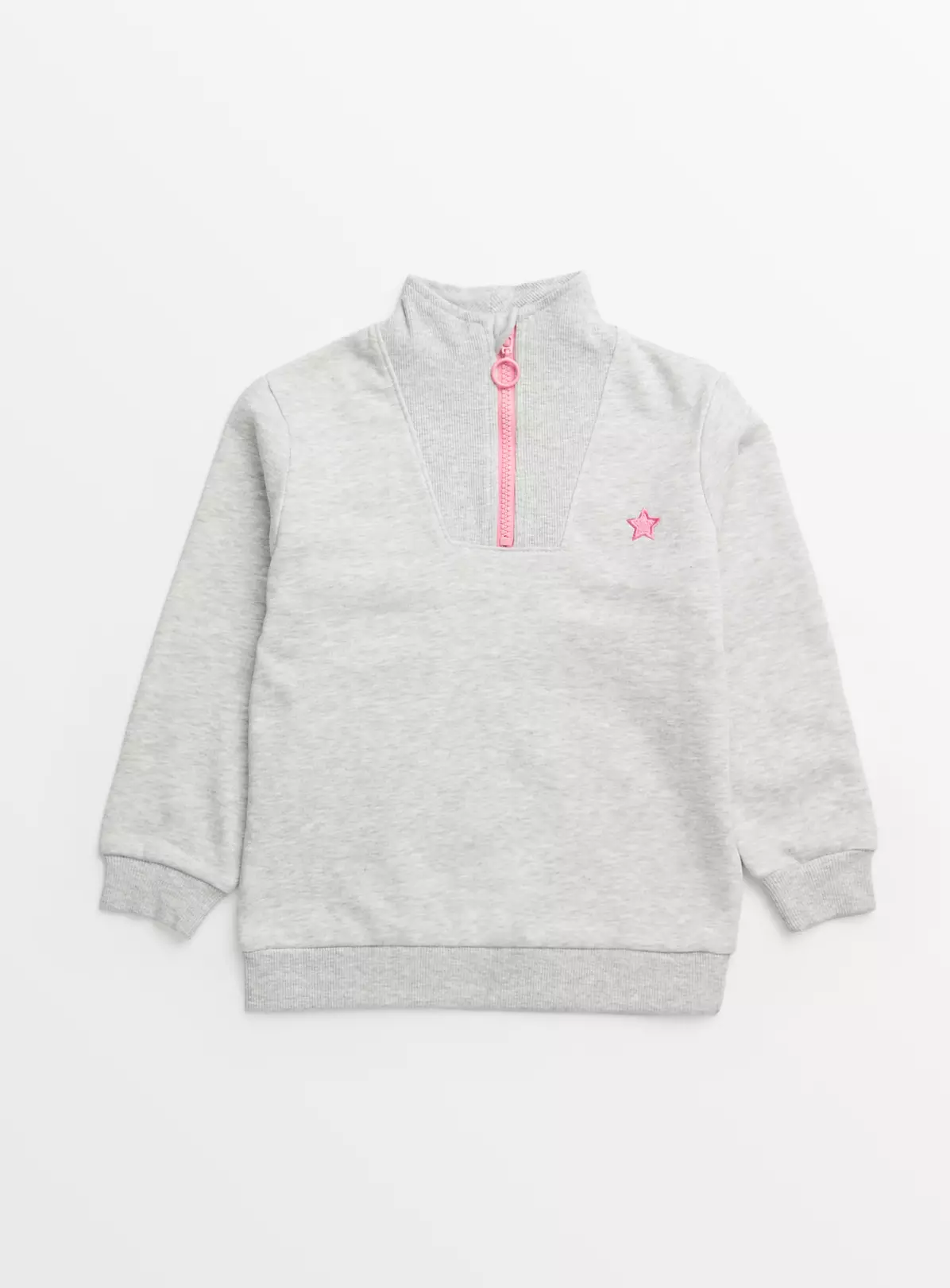 A cute and comfy addition to their collection! Our grey quarter zip sweatshirt features a cute contrasting pink zip and a star motif on the front. Crafted from a cottton-rich blend, it’s perfect for weekend wear!