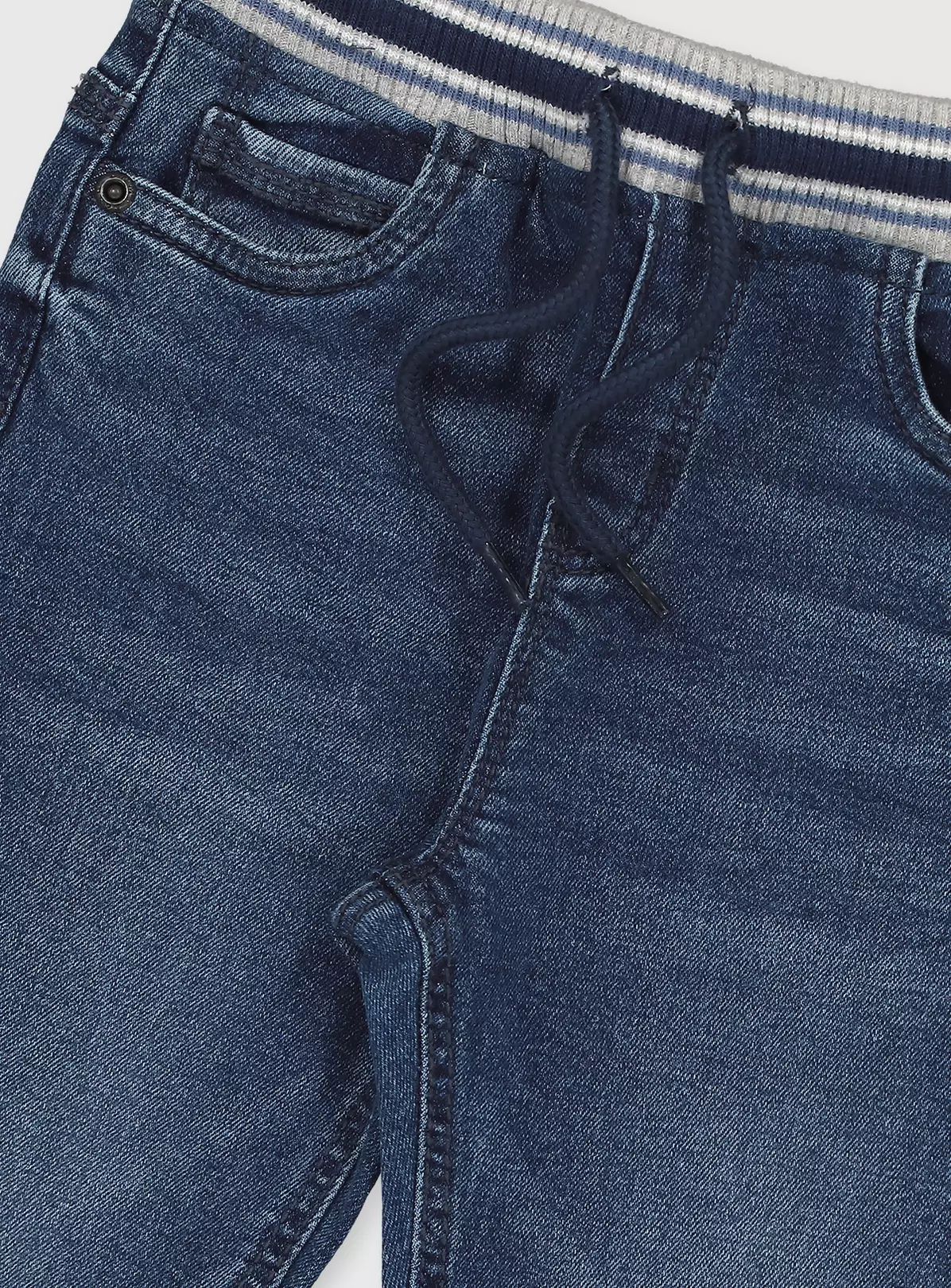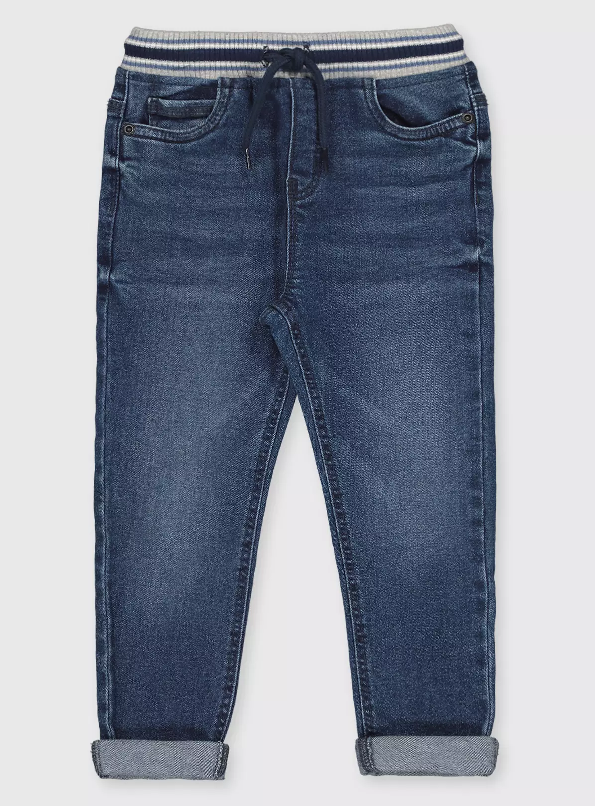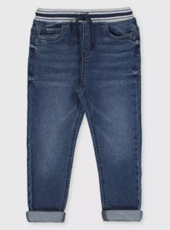 Your tiny trendsetter will look the business in these comfy blue denim jeans. Made from a cotton rich blend with extra stretch and a pull on waist, turn up the hems and team with a bright cotton tee.