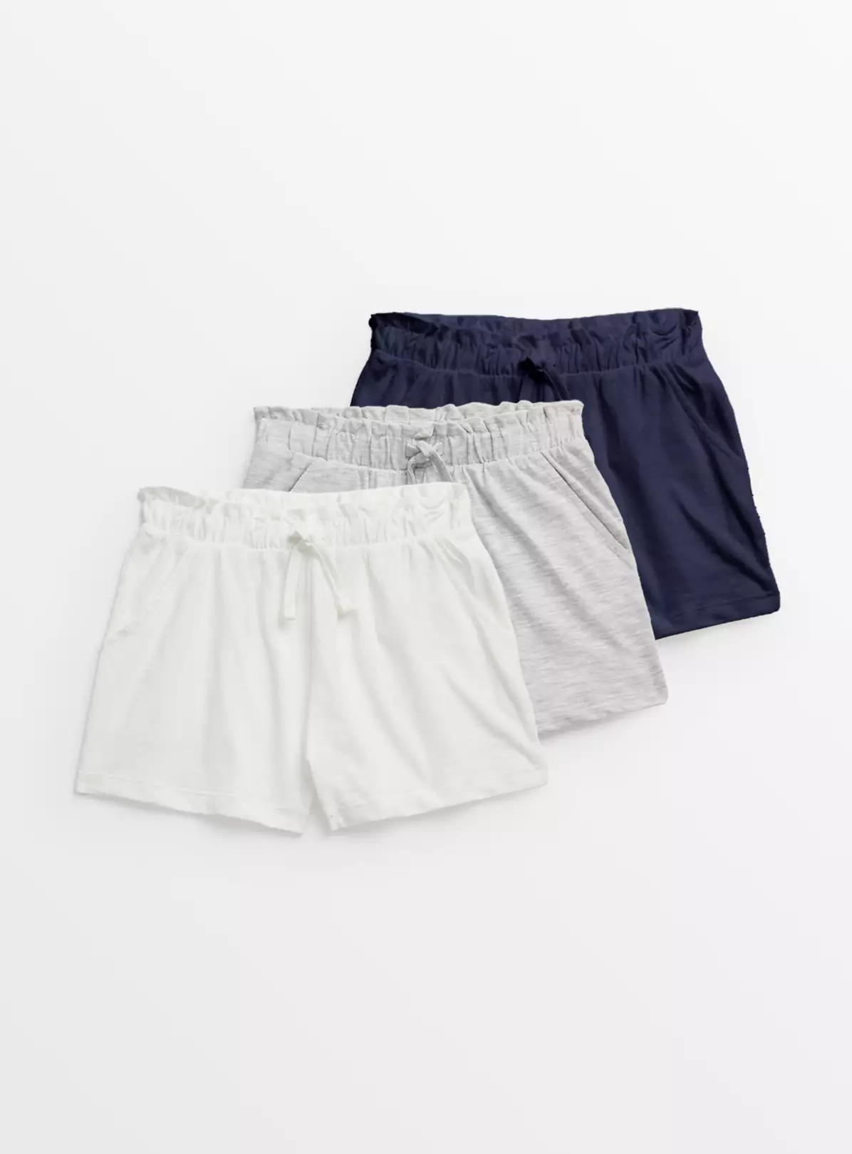 Stock up on comfy essentials for your little one with our 3 pack of jersey shorts! This pack includes 1 grey marl, 1 white and 1 navy pair. Crafted from a comfy cotton-rich blend, they’re the perfect choice for when they’re out and about!