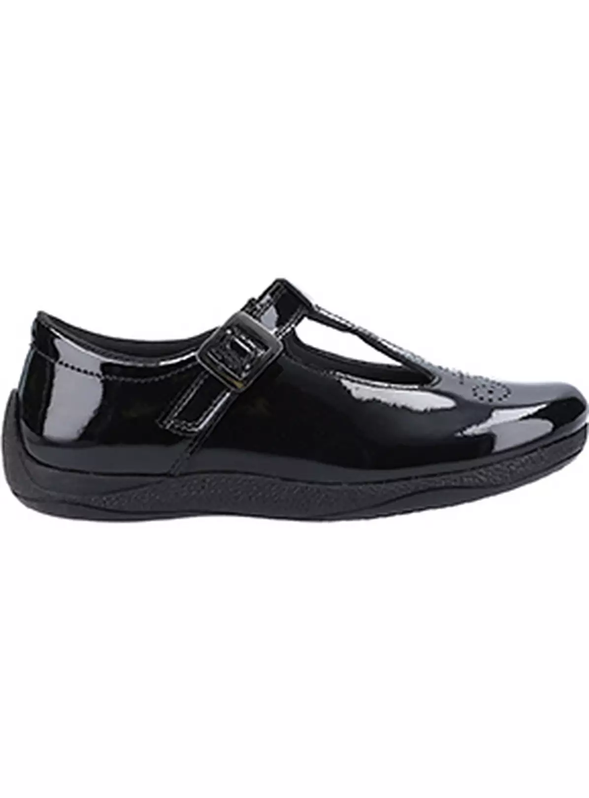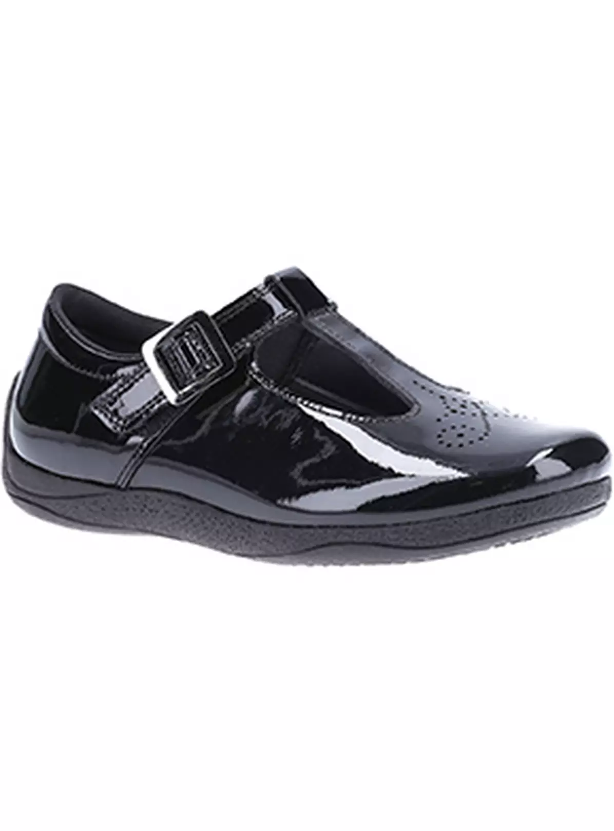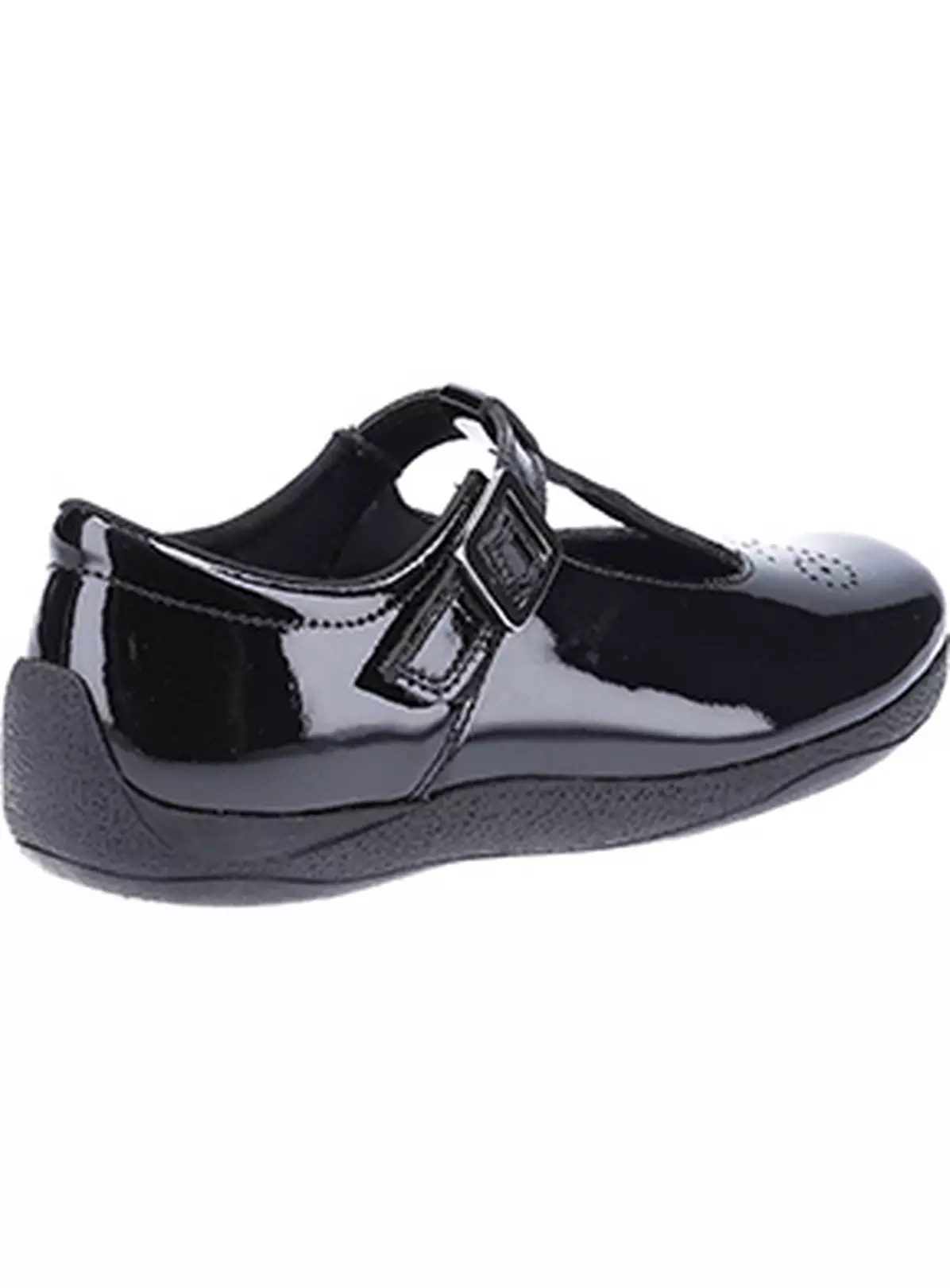 A Classic T- Bar with Buckle Strap Fastening; The Eliza Patent Shoe boasts an enhanced heel guard for scuff protection and a durable yet sturdy TPR outsole to keep feet secure.