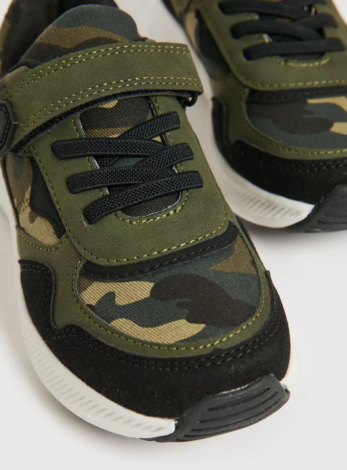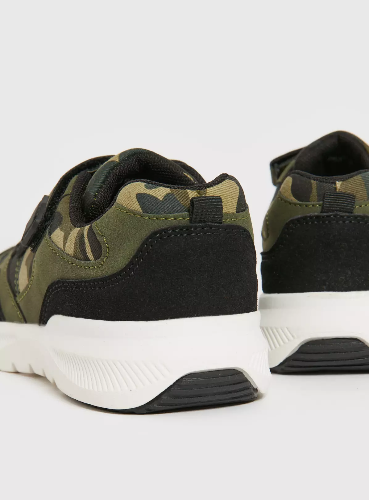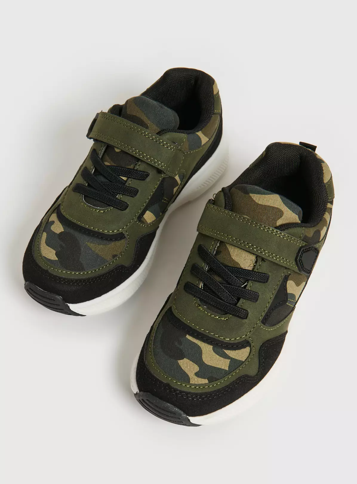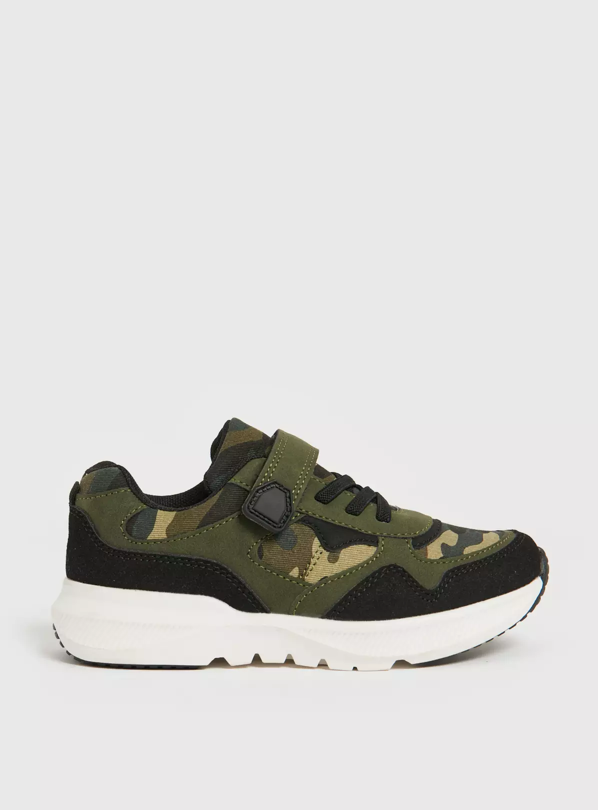 These khaki canvas trainers with white contrast soles, stretch laces and one touch fastening straps are a must-have for busy little feet. When you need them to scrub up nicely, pop them on with our blue checkerboard shirt, ready for family time.