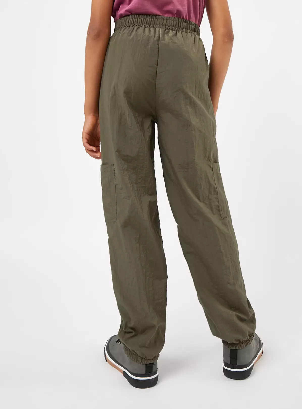 They’ll love these super duper parachute joggers. In an edgy khaki, they have a pull-on waist with non-functional drawstring, two handy side pockets, two cargo pockets and cuffed ankles. Team with their favourite tee of the moment.