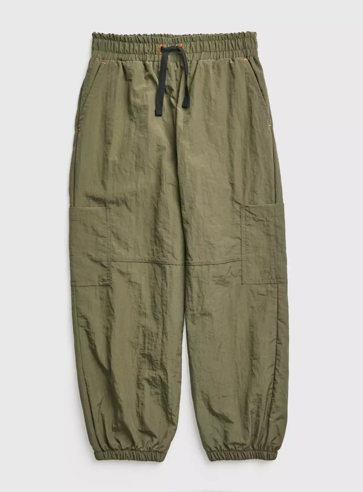 They’ll love these super duper parachute joggers. In an edgy khaki, they have a pull-on waist with non-functional drawstring, two handy side pockets, two cargo pockets and cuffed ankles. Team with their favourite tee of the moment.