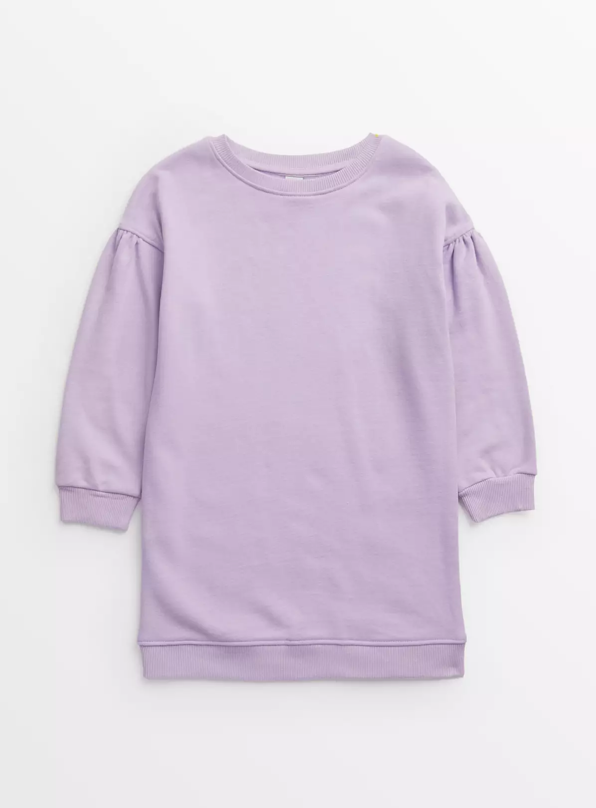 They’ll be cute and comfy in our sweatshirt dress. In a cute lilac shade, it features a crew neckline and has long sleeves. Perfect for wearing with tights and boots this season!