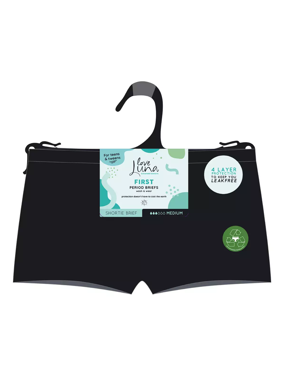 Our Teens First Period Shortie knickers are specifically designed to fit tweens and teens, made in junior sizes for younger growing bodies. FIRST by Love Luna period briefs have 4 layers of absorbency and protection to guard against life’s annoying and sometimes embarrassing situations. Holds up to the equivalent of 10-15ml, which is 2-3 regular tampons worth.